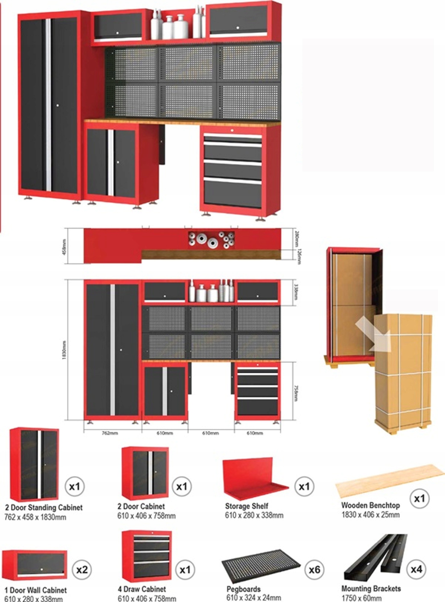 - дводверна шафа стояча, розміри 762 х 458 х 1830 мм