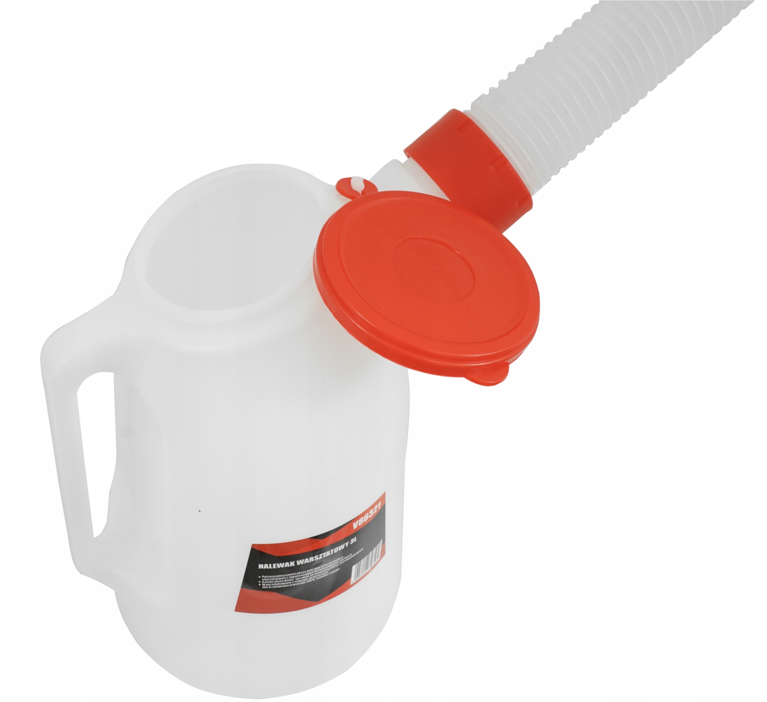 Виготовлена з міцного поліетиленового матеріалу, стійкого до робочих рідин, має практичну гнучку воронку та гвинтовий на кришці.