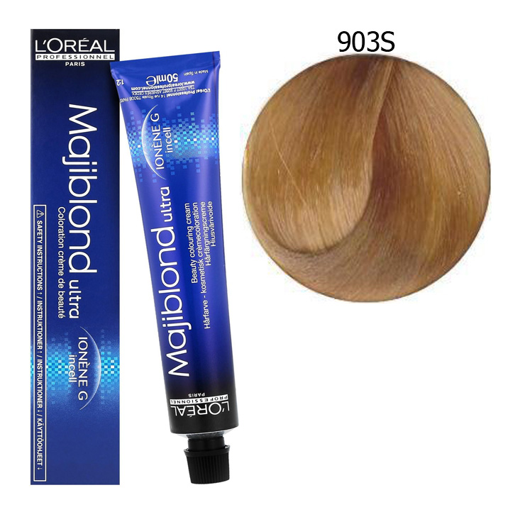 L'Oréal Majirel High Lift Majiblond 900S – це сучасна фарба для волосся, яка освітлює пасма до 4½ тонів, нейтралізуючи теплі відблиски. Формула Majiblond 900S majirel high lift збагачена поживними речовинами, такими як Ionène G™ та Incell, щоб надати волоссю міцності та гарного вигляду після фарбування.