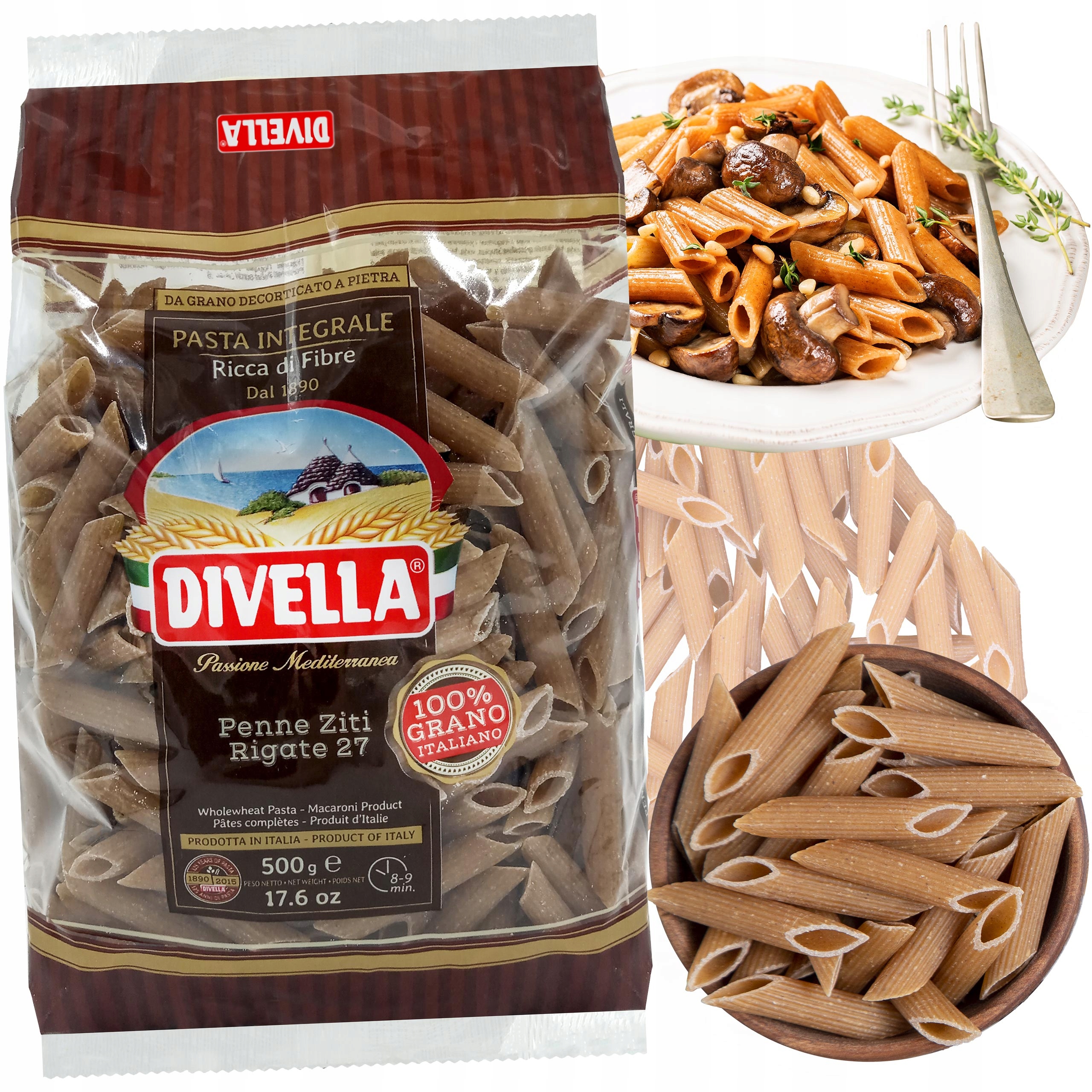 Вміст цільнозернового борошна з твердих сортів пшениці робить його багатим на клітковину, підтримуючи травлення та забезпечуючи відчуття ситості. Цільнозерновий пенне rigate — чудовий вибір для людей, які хочуть насолоджуватися смачними, корисними стравами без шкоди для автентики. Італійський смак.