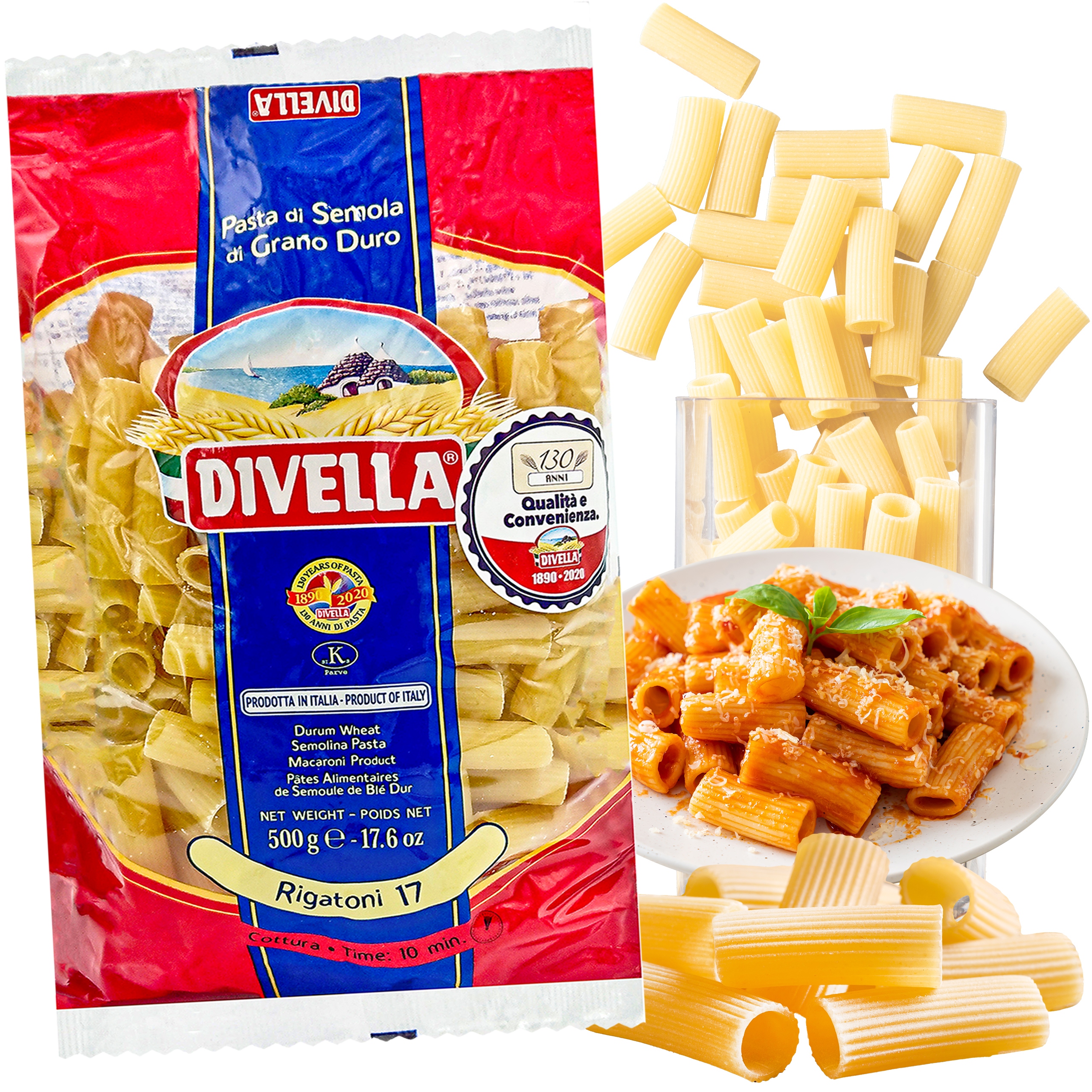 Паста твердих сортів пшениці у формі смугастих трубочок. Ріфчастий характер пасти дозволяє їй добре поєднуватися з багатьма видами соусів, зберігаючи їх як на поверхні, так і всередині. Рігатоні - це паста у формі довгих трубочок.