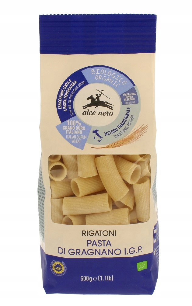 ПАСТА (SEMOLINE - PASTA DI GRAGNANO) RIGATONI BIO 500 г - ALCE NERO