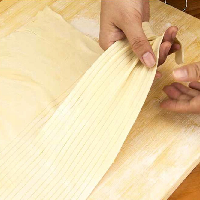 - Рухомі леза у формі колеса точно нарізають макаронне тісто на рівні смужки