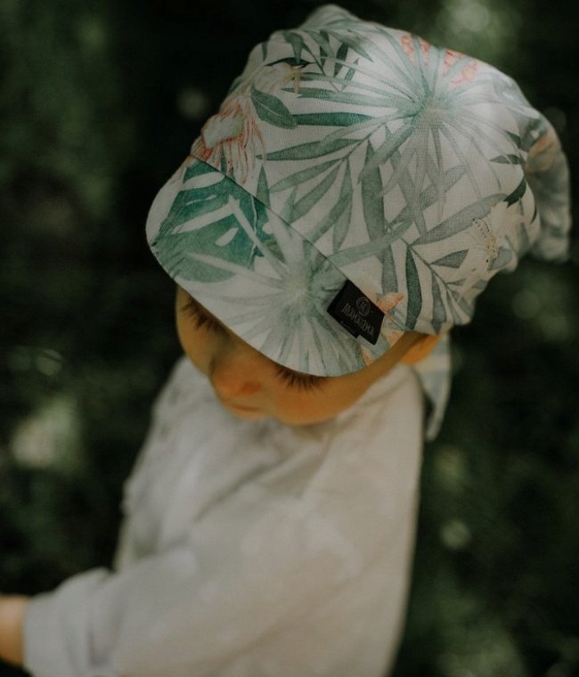 М'який, бамбуковий шарф, який чудово захищає голову від вітру та сонячних променів. Спереду має формований козирок, який додатково захищає обличчя від сонячних променів. Ззаду шарф вшита гумка, завдяки чому він ідеально підлаштовується під розмір голови малюка і не тисне вузлом на шию лежачого малюка.