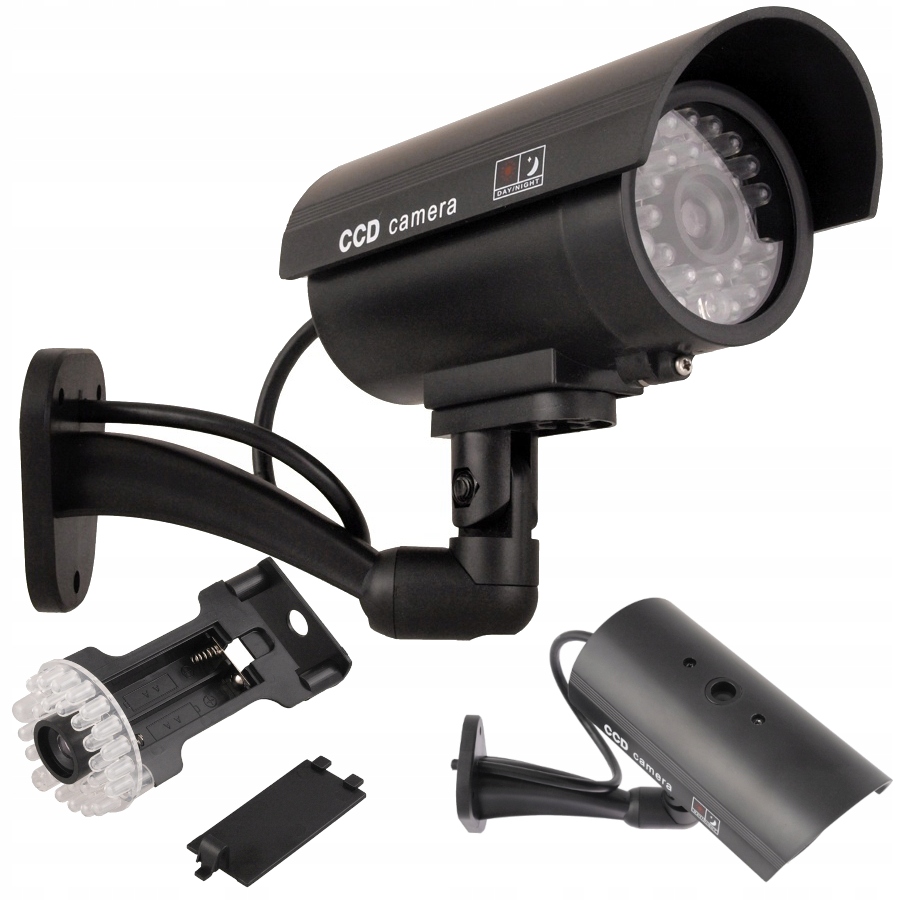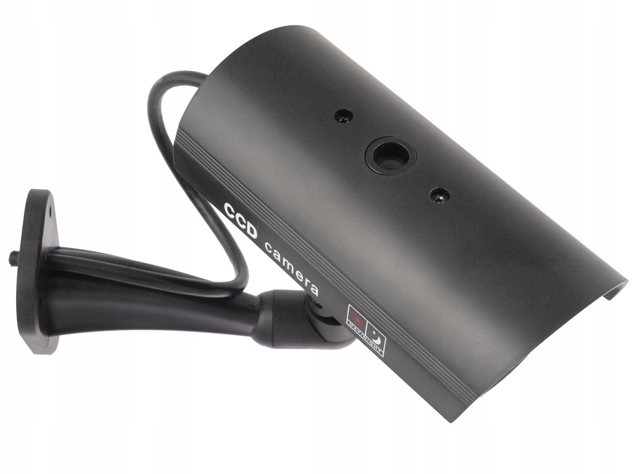 Професійна імітація камери з імітацією ІЧ діода та червоного діода. Виготовлено з високоякісних матеріалів і увагою до деталей. Все це виглядає дуже реалістично - це може відлякати багатьох злодіїв. Навіть досвідчений монтажник відеоспостереження не зможе відрізнити, чи має він справу з професійною промисловою камерою або муляжем. Червоний світлодіод блимає з інтервалом у 5 секунд.