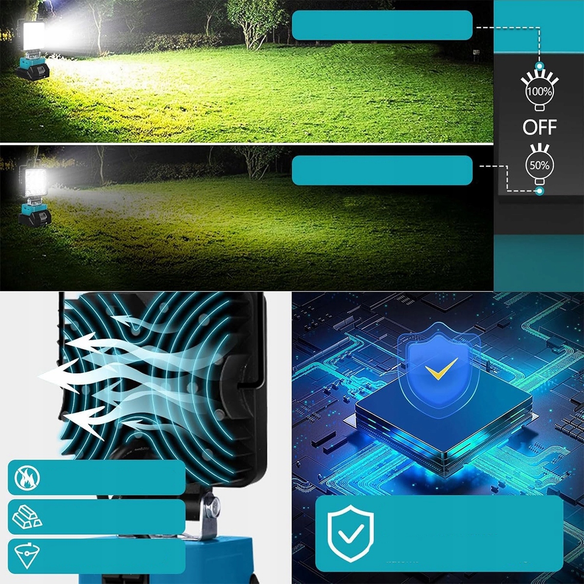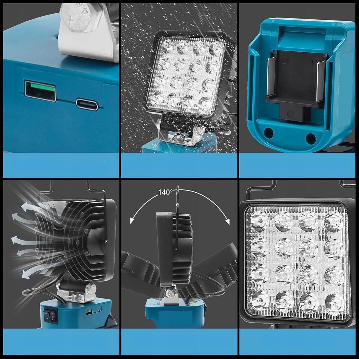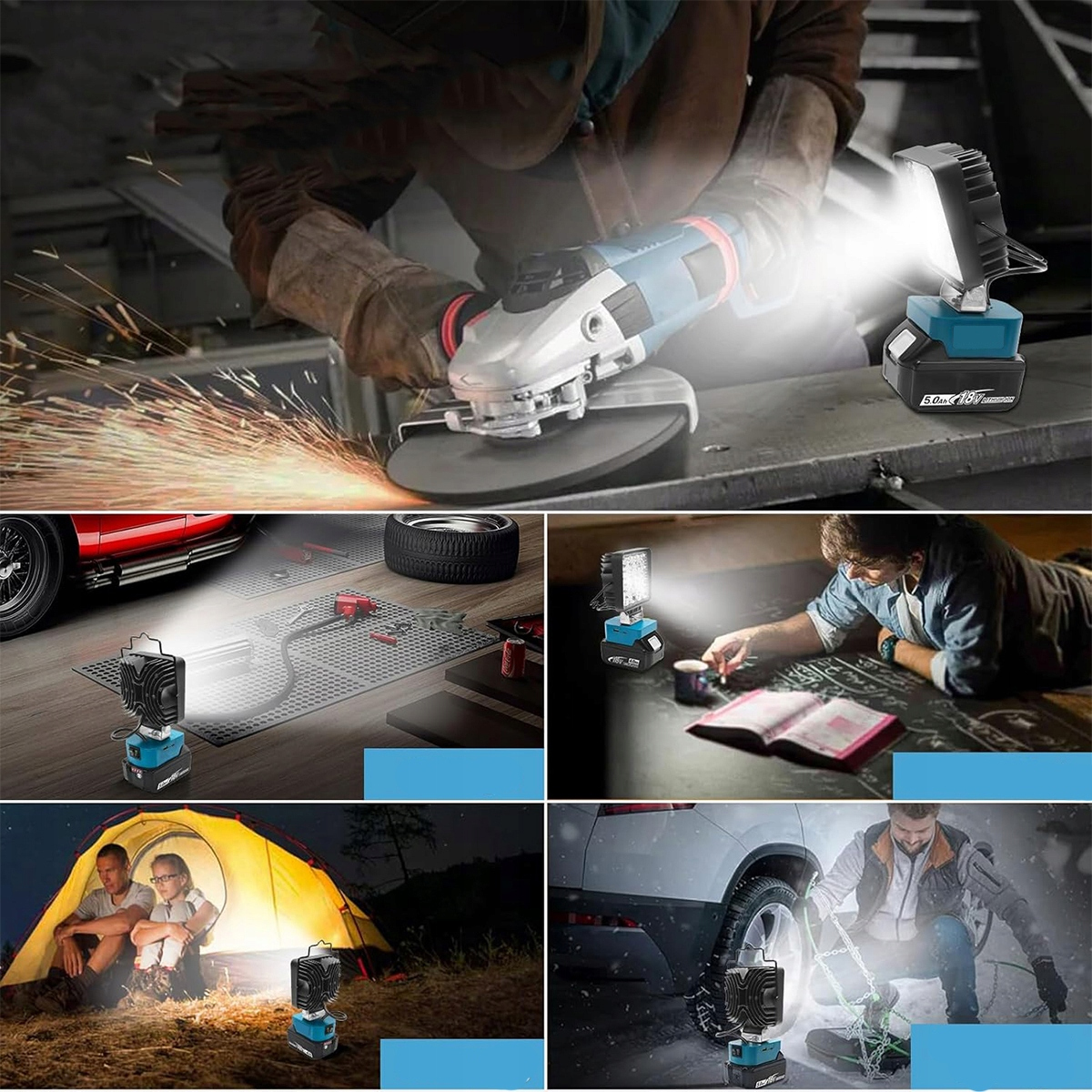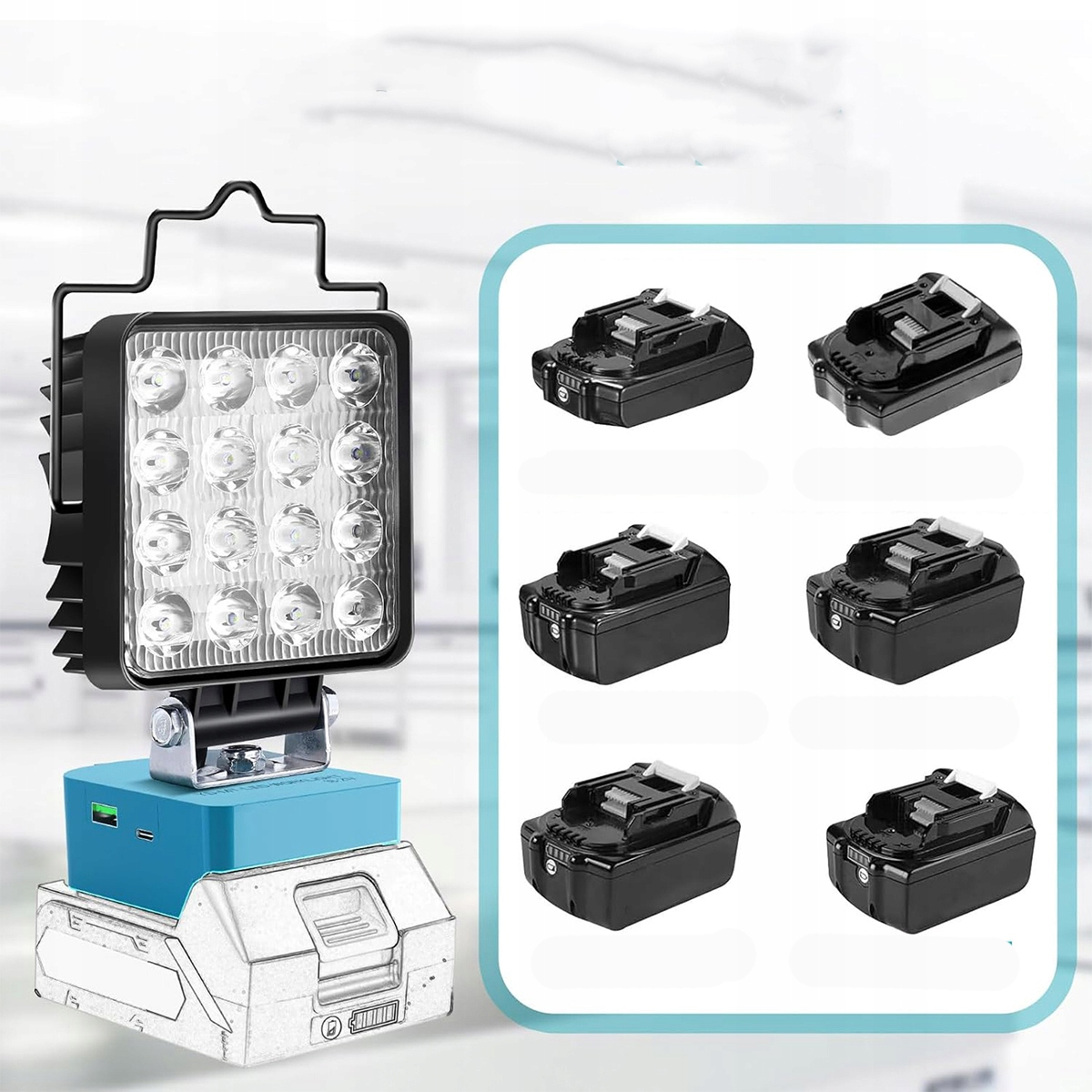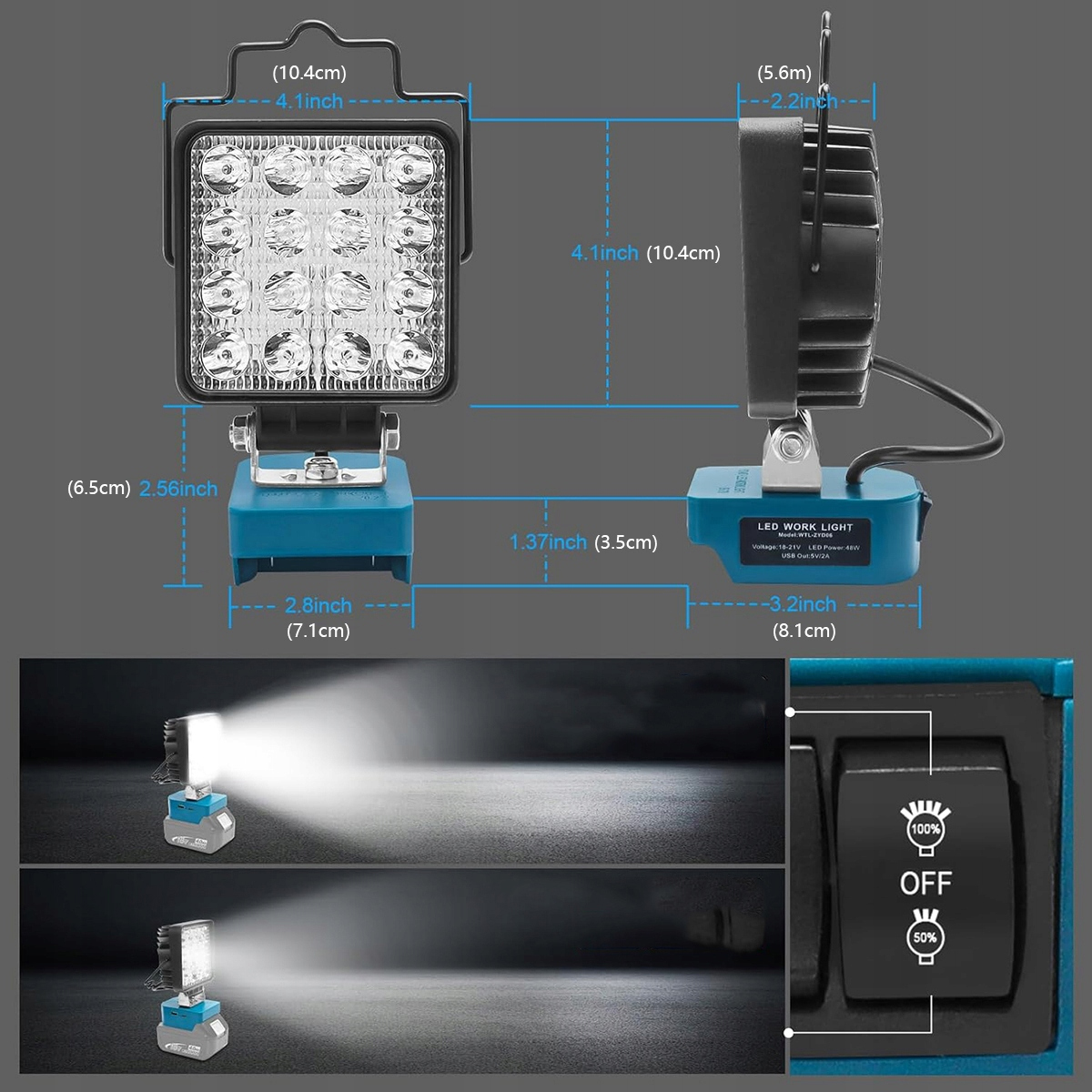 Світлодіодна робоча лампа YouKuke, сумісна з акумулятором Makita 18 V, світлодіод 48 в 4800 LM з 2 рівнями яскравості, портативної світлодіодної фари акумулятора з портами USB та типами C на будівництві та кемпінгу (акумулятор не включається)