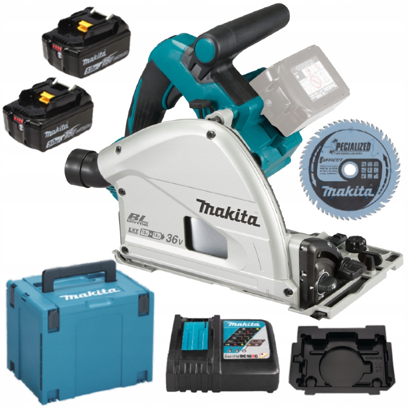 - Акумуляторна ручна циркулярна пилка-занурювач з живленням від 2 акумуляторів 18 В з параметрами, подібними до мережі SP6000