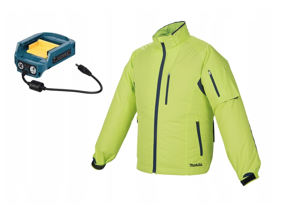 - Куртка з вентиляцією, що живиться від літій-іонних акумуляторів LXT®, забезпечує додатковий комфорт при високих температурах. Водостійкий і миючий матеріал робить його зручним у використанні. Куртка має 2 вентилятори, 3 налаштування повітряного потоку, турбо режим і знімний капюшон. Час роботи з акумулятором ємністю 5,0 А·год 18 В становить приблизно 12 годин при найвищому налаштуванні потоку повітря. Куртка має адаптер акумулятора.