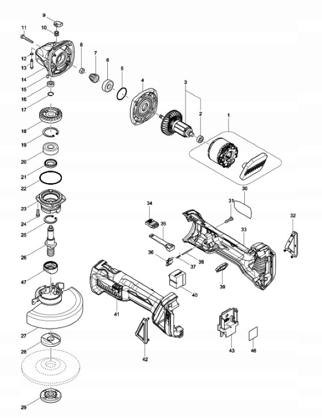 / Статор Makita для акумуляторної кутової шліфувальної машини DGA506
