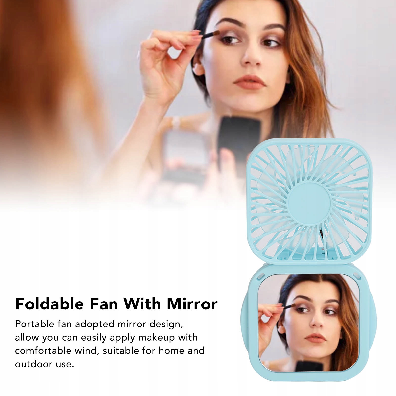2. Дзеркало: портативний дизайн дзеркала з вентилятором дозволяє легко наносити макіяж із комфортним вітром, підходить для використання вдома та на вулиці.