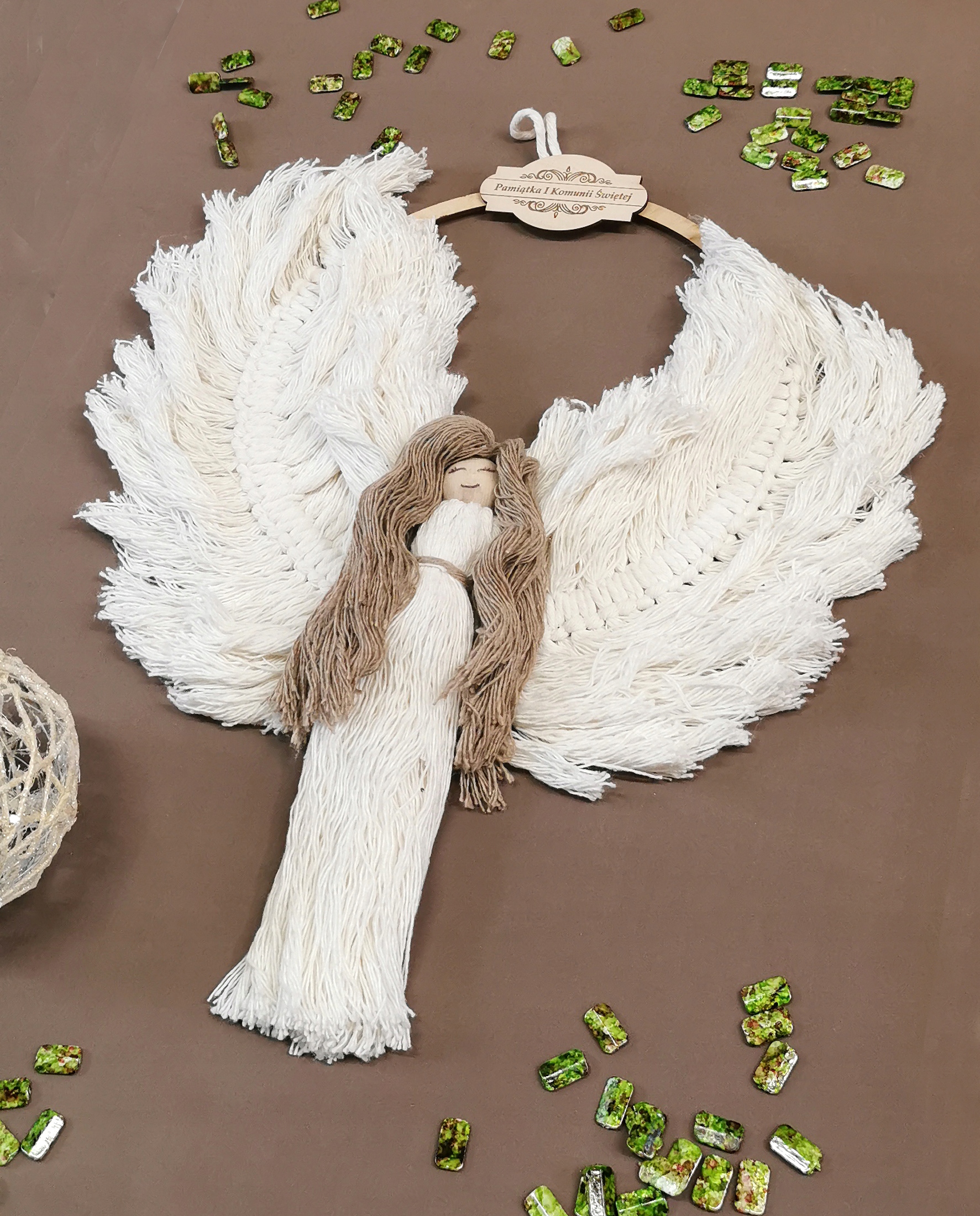МАКРАМ ОХОДІЙНИЙ Ангел, Хрещення, подарунок, на щастя, сувенір 60 см