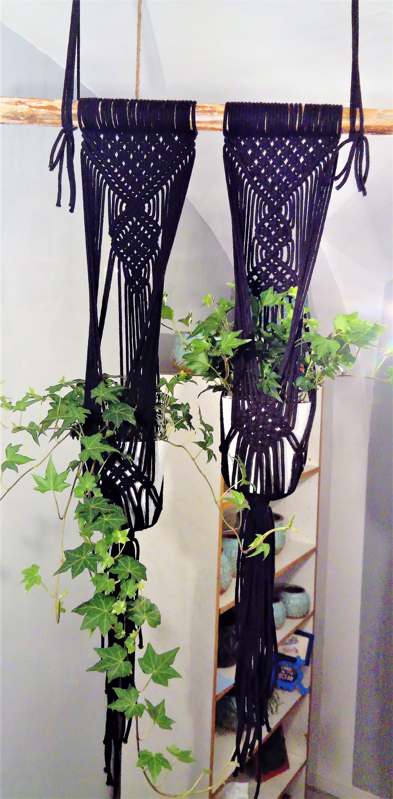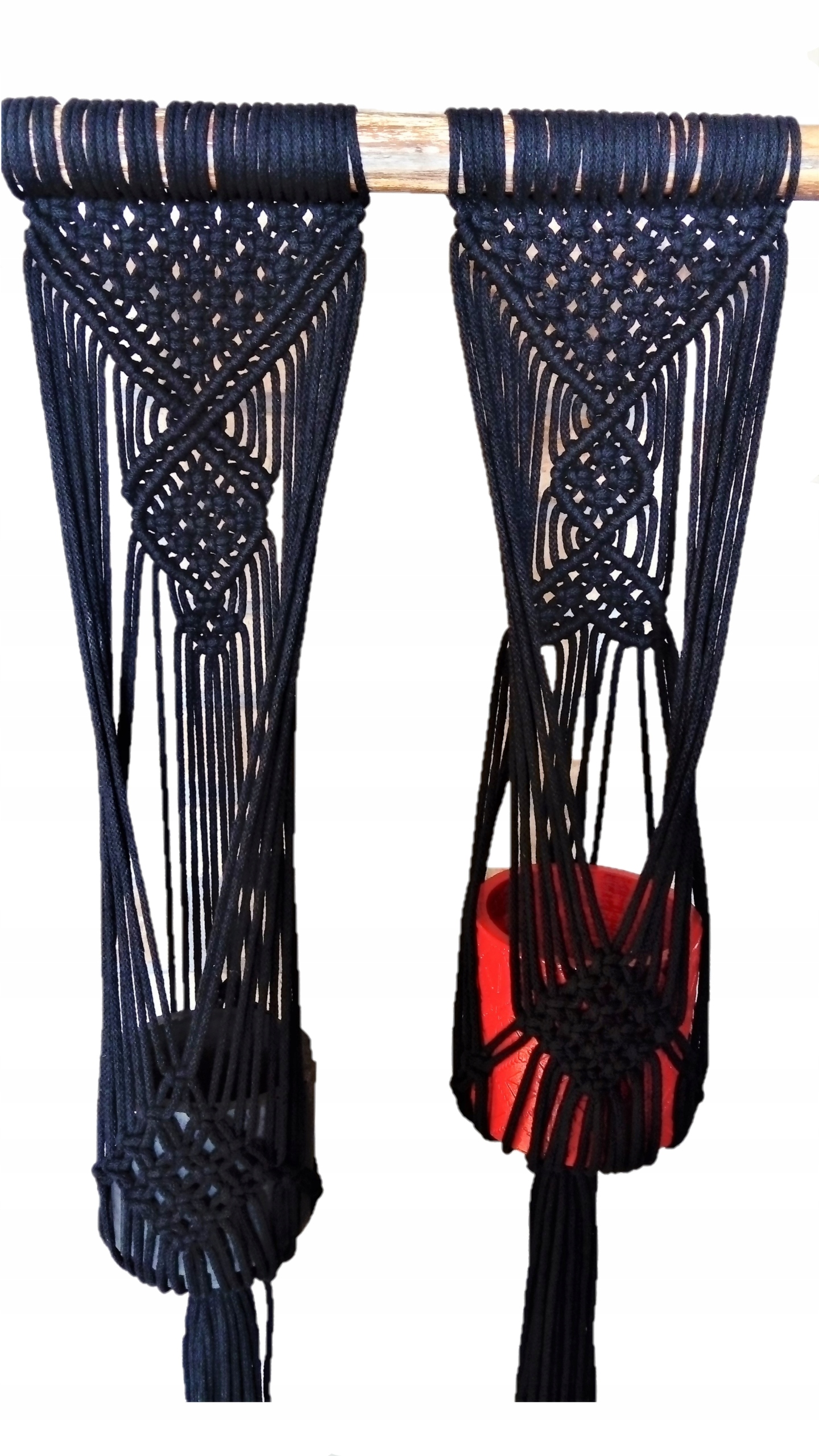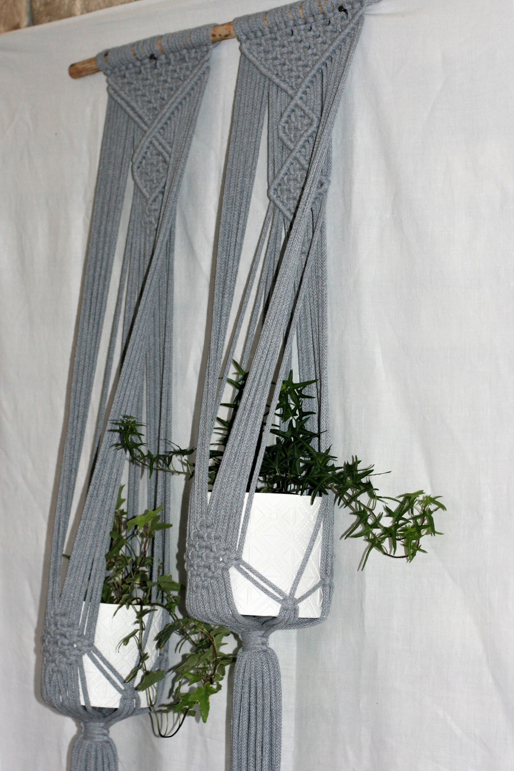 Квітка, що висить з 5-мм бавовняної струни, макрама, для двох горщиків з дерев’яною натуральною паличкою