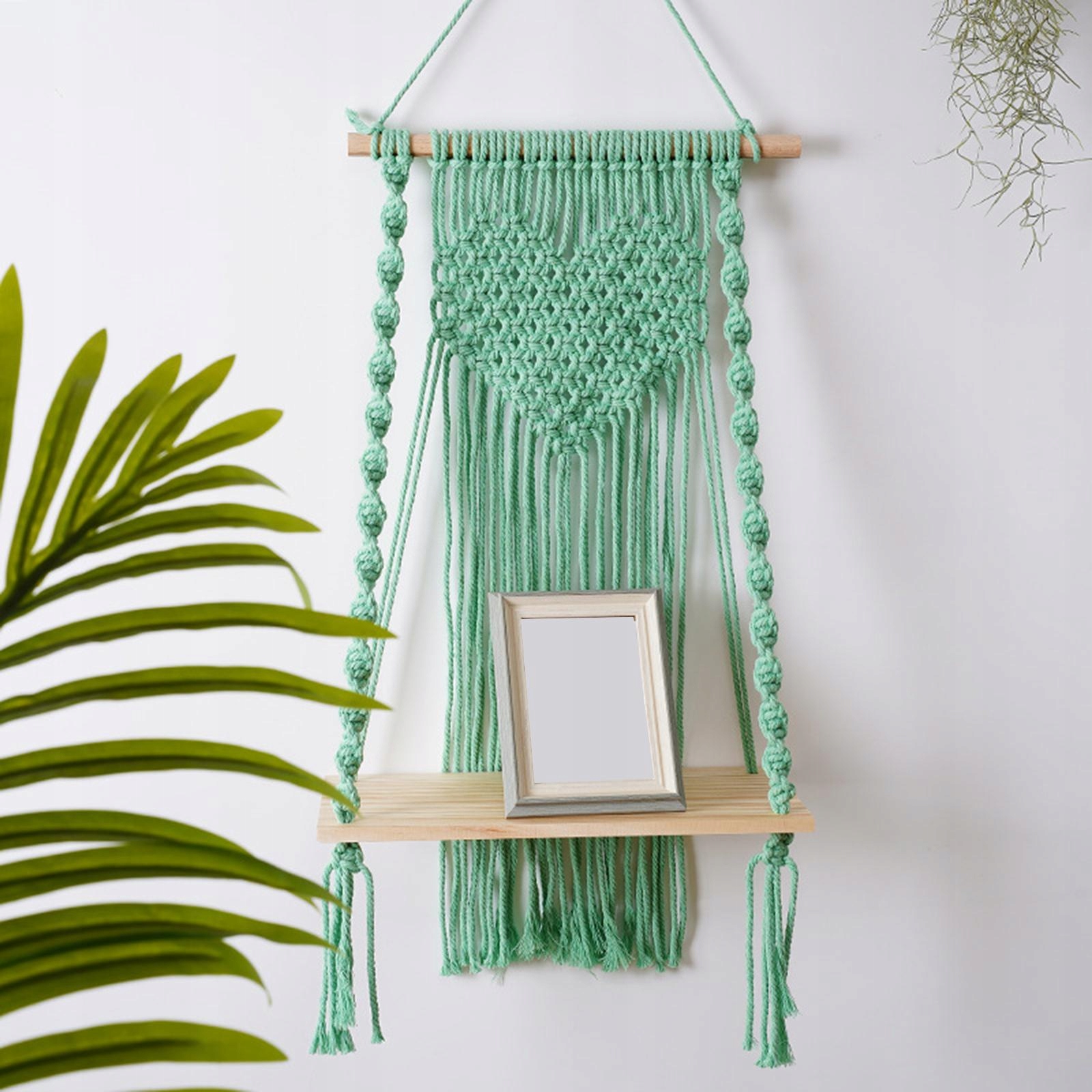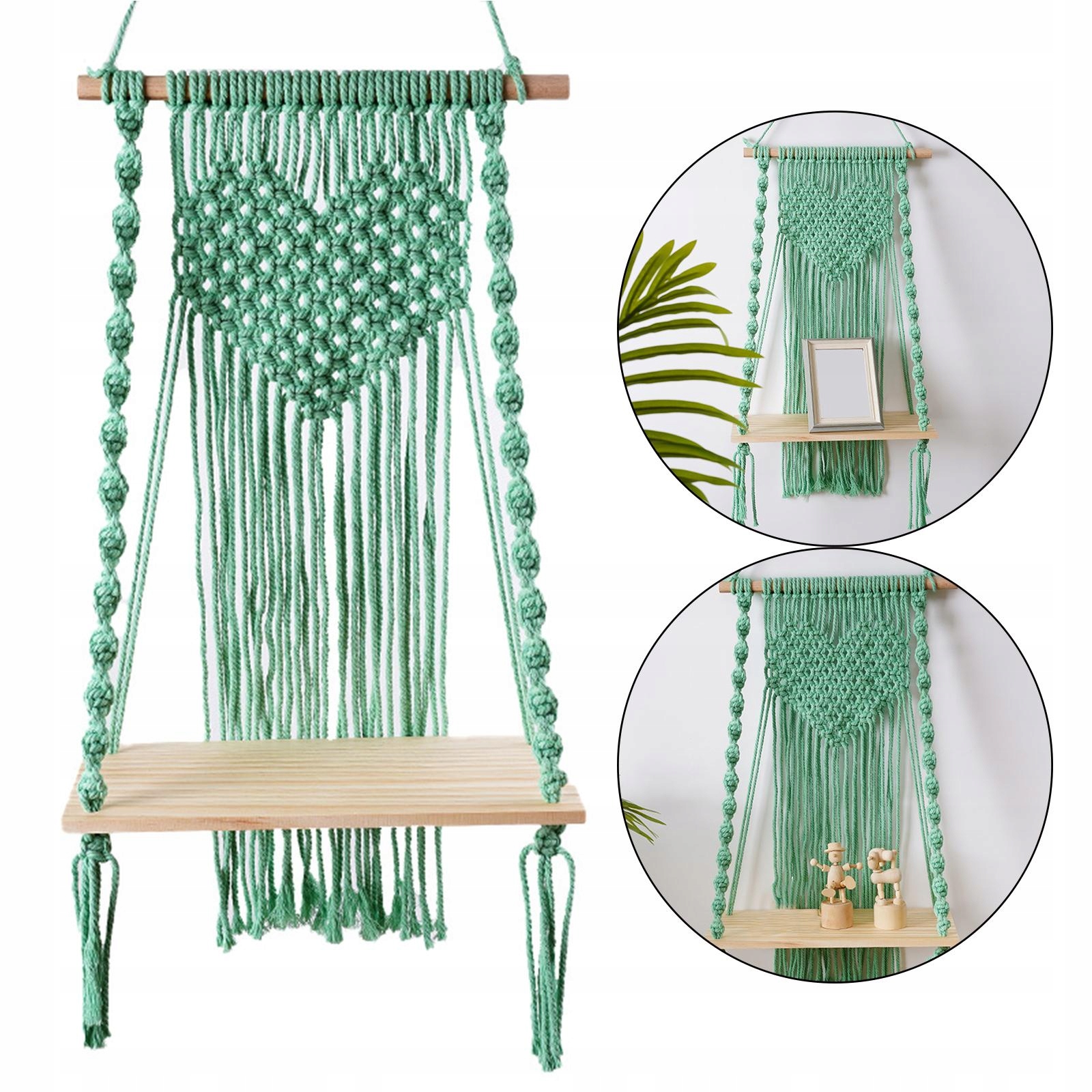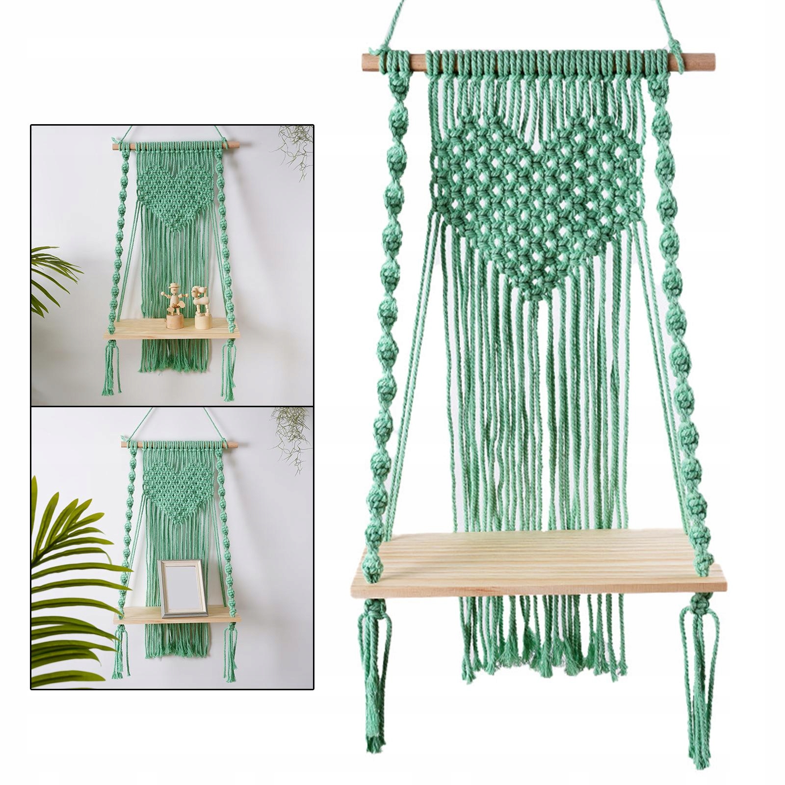 Makrama ścienna wisząca półka wieszak uchwyt doniczka Boho ramki na zdjęcia zielone