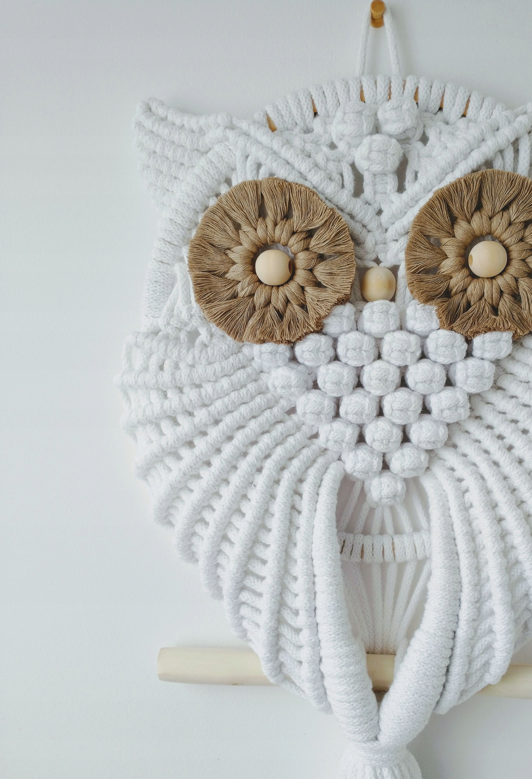 Макрамійська сова, безсумнівно, є унікальною прикрасою для будь -якого інтер'єру. Це чудово виглядає у вітальні, спальні, передпокої чи дитячій кімнаті. Це додає чарівності і ідеально наповнить порожній простір.