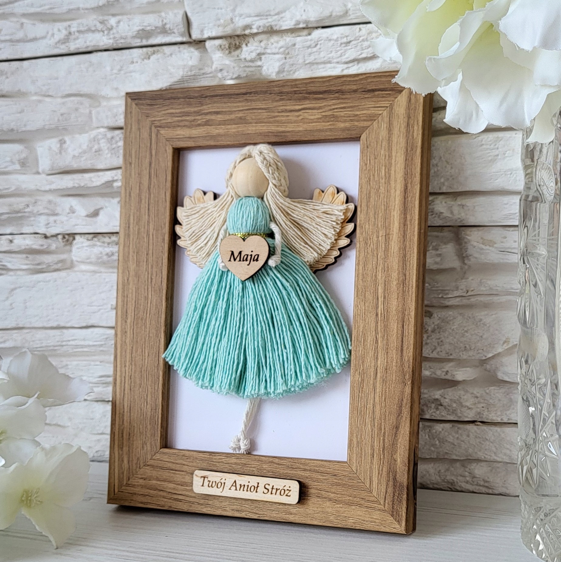МАКРАМЕ АНГЕЛ В РАМЦІ ПЕРСОНАЛІЗАЦІЯ НА ХРЕЩЕННЯ СУВЕНІРИ НА ДЕНЬ НАРОДЖЕННЯ