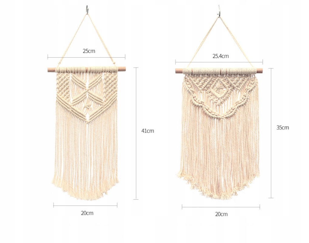- Матеріали, що використовуються у виробництві, — це бавовняні нитки та дерево, які створюють гарний, міцний і екологічний зручний декор, який підходить для використання всередині приміщень.