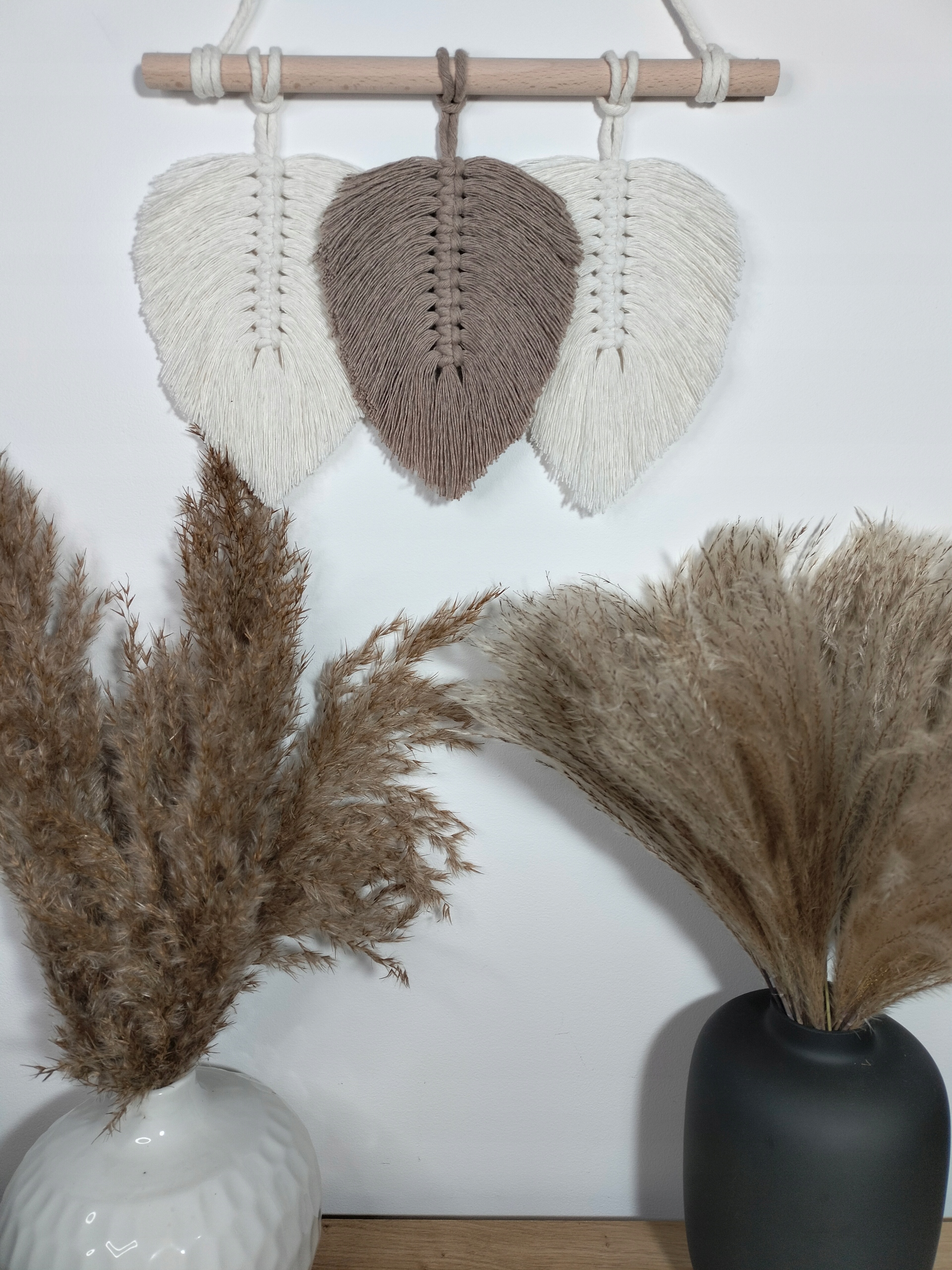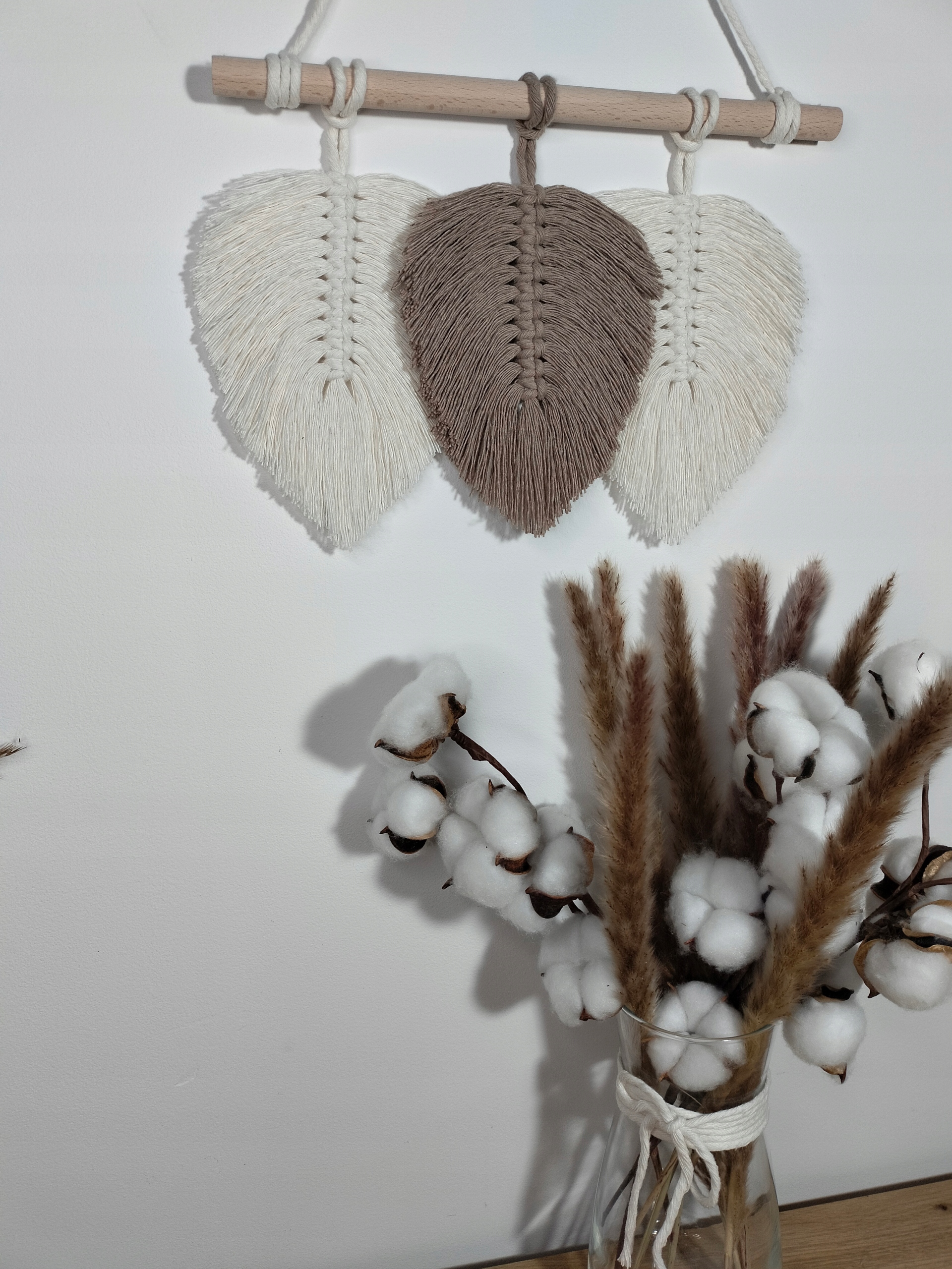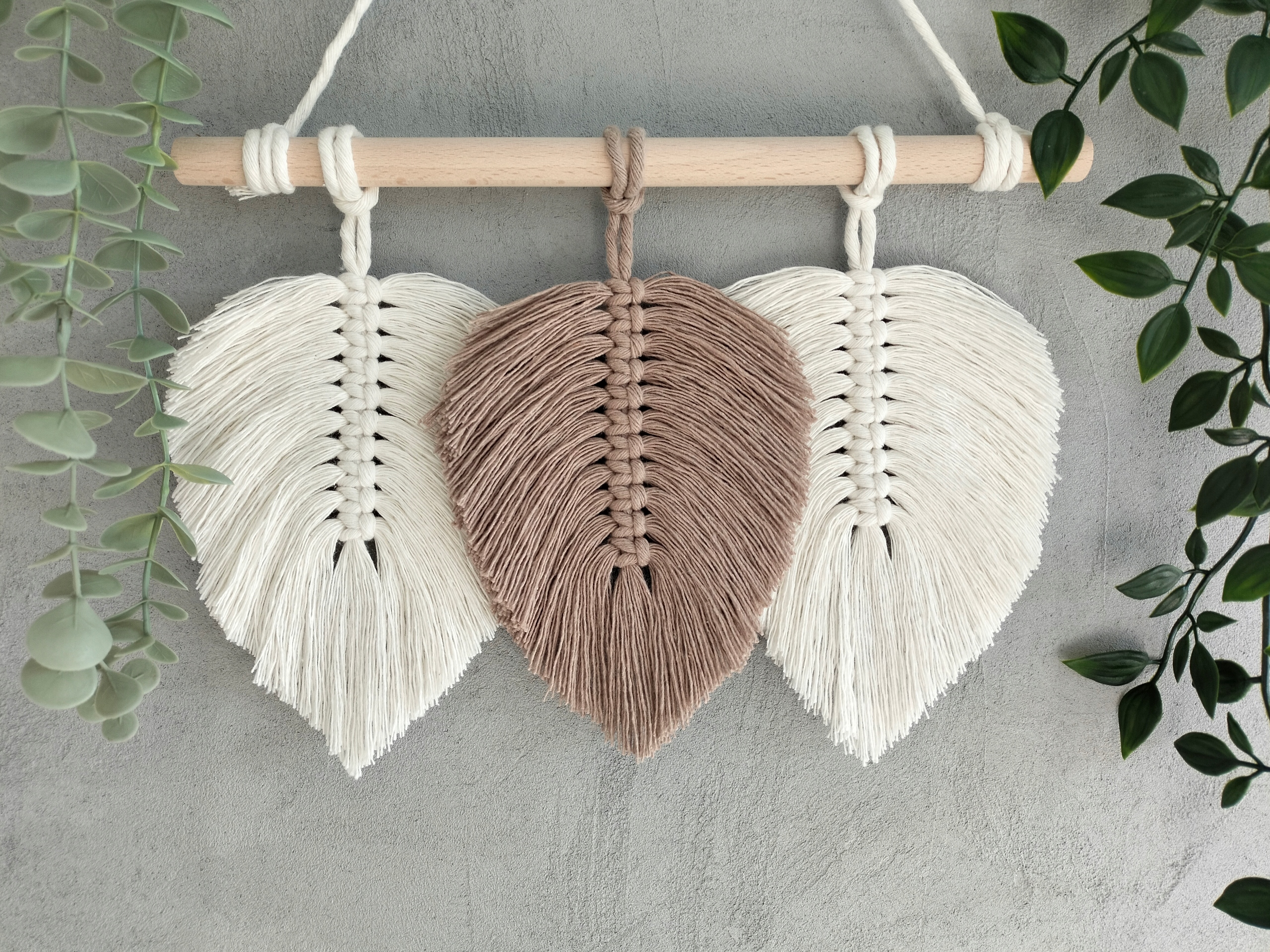 МАКРАМЕ ЛИСТЯ бохо пір'я 30 см декор екрю беж