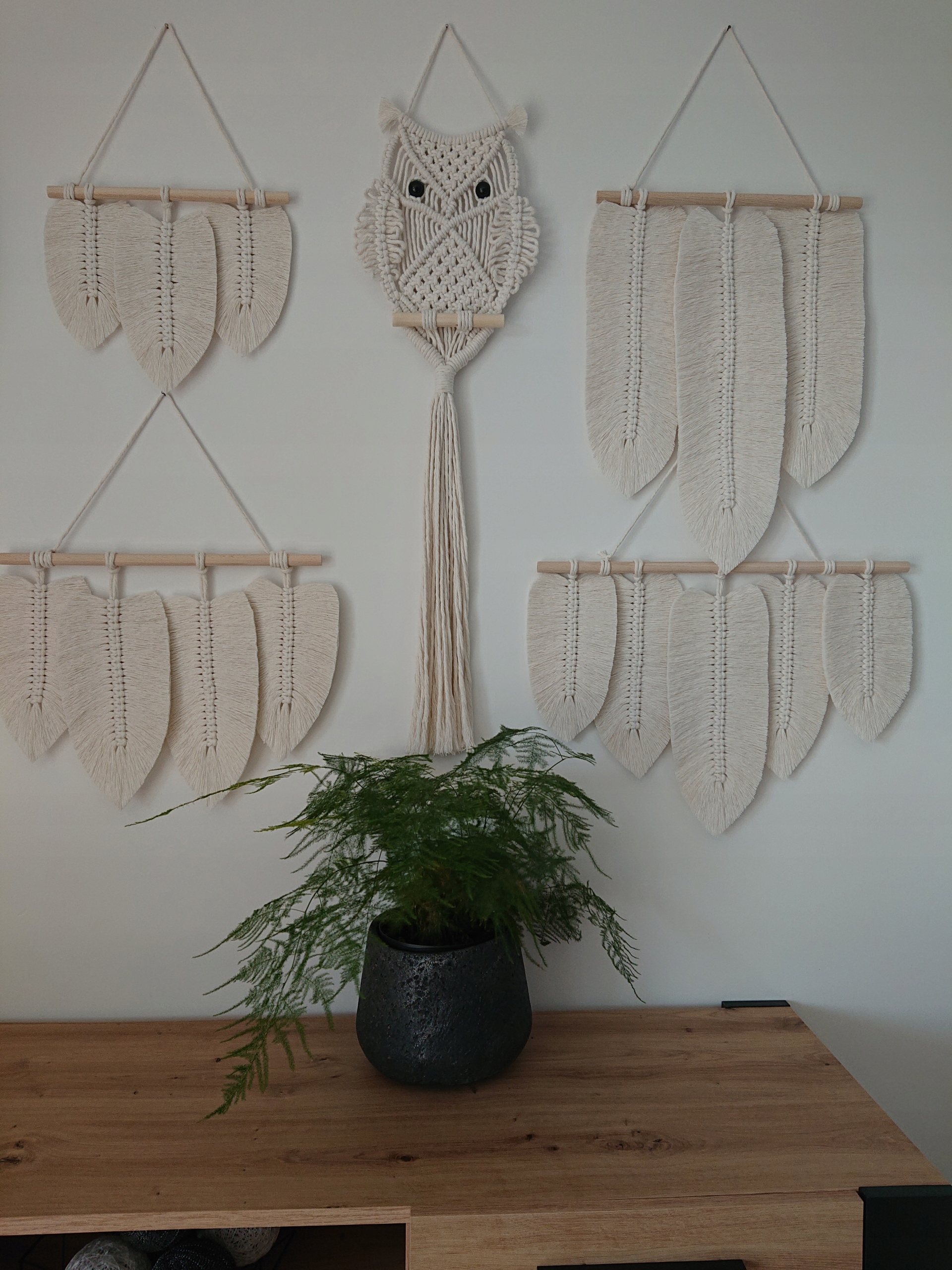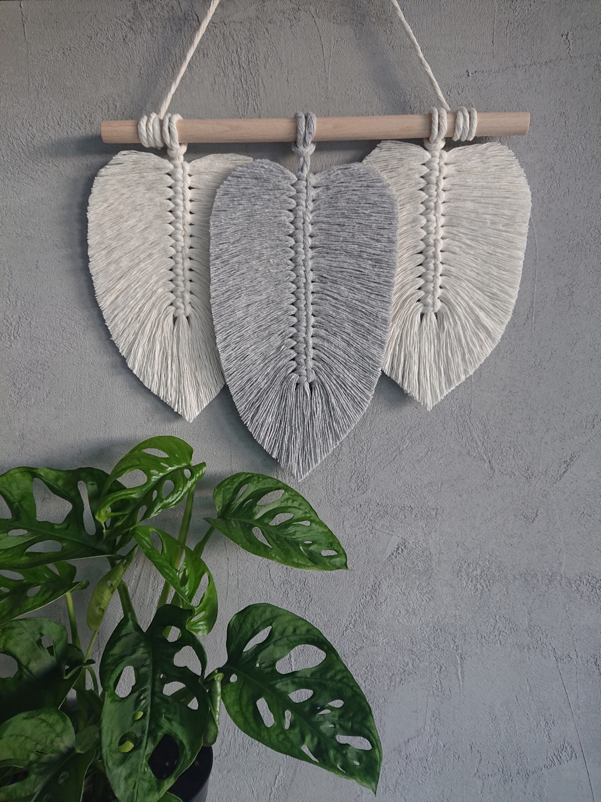 МАКРАМЕ ЛИСТЯ Бохо пір'я на стіну, 30 см, сірий