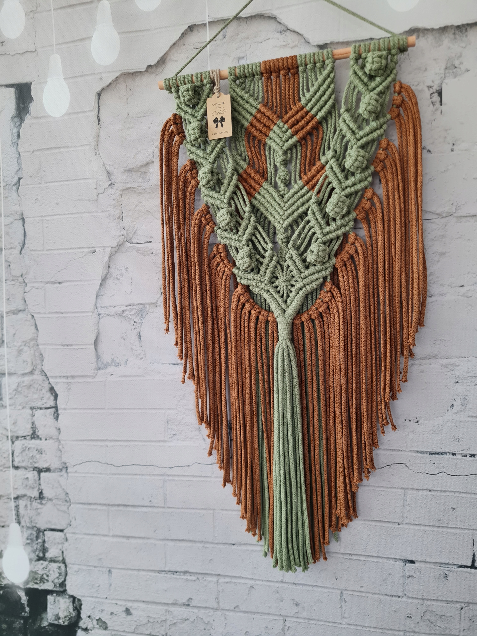 Бохо настінне макраме "Кориця та шавлія" - теплі відтінки природи