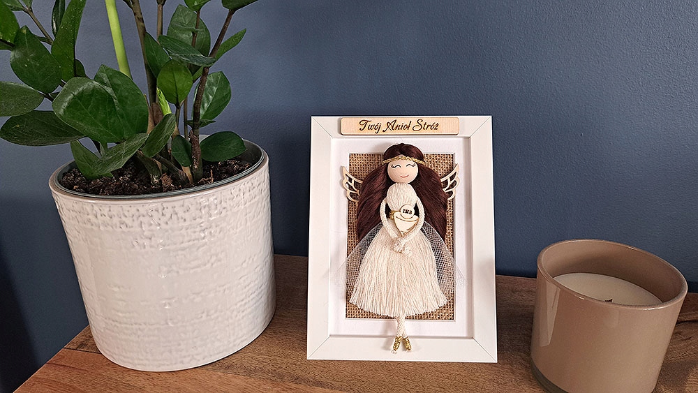 Макраме в рамці для дівчинки Ангел-охоронець на згадку про Перше Святе Причастя