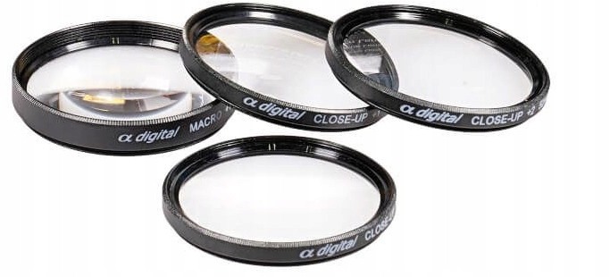 Набір Digital Kingt включає 4 макролінзи, які зручні у використанні та не впливають на світлосилу об’єктива, не заважають вимірюванню освітленості чи автоматичному фокусуванню. Фокусуюча здатність показаних лінз виражається в діоптріях: +1, +2, +3 ... Чим вище значення, тим більша здатність фокусування. Це розміри (діаметр) 52 мм.