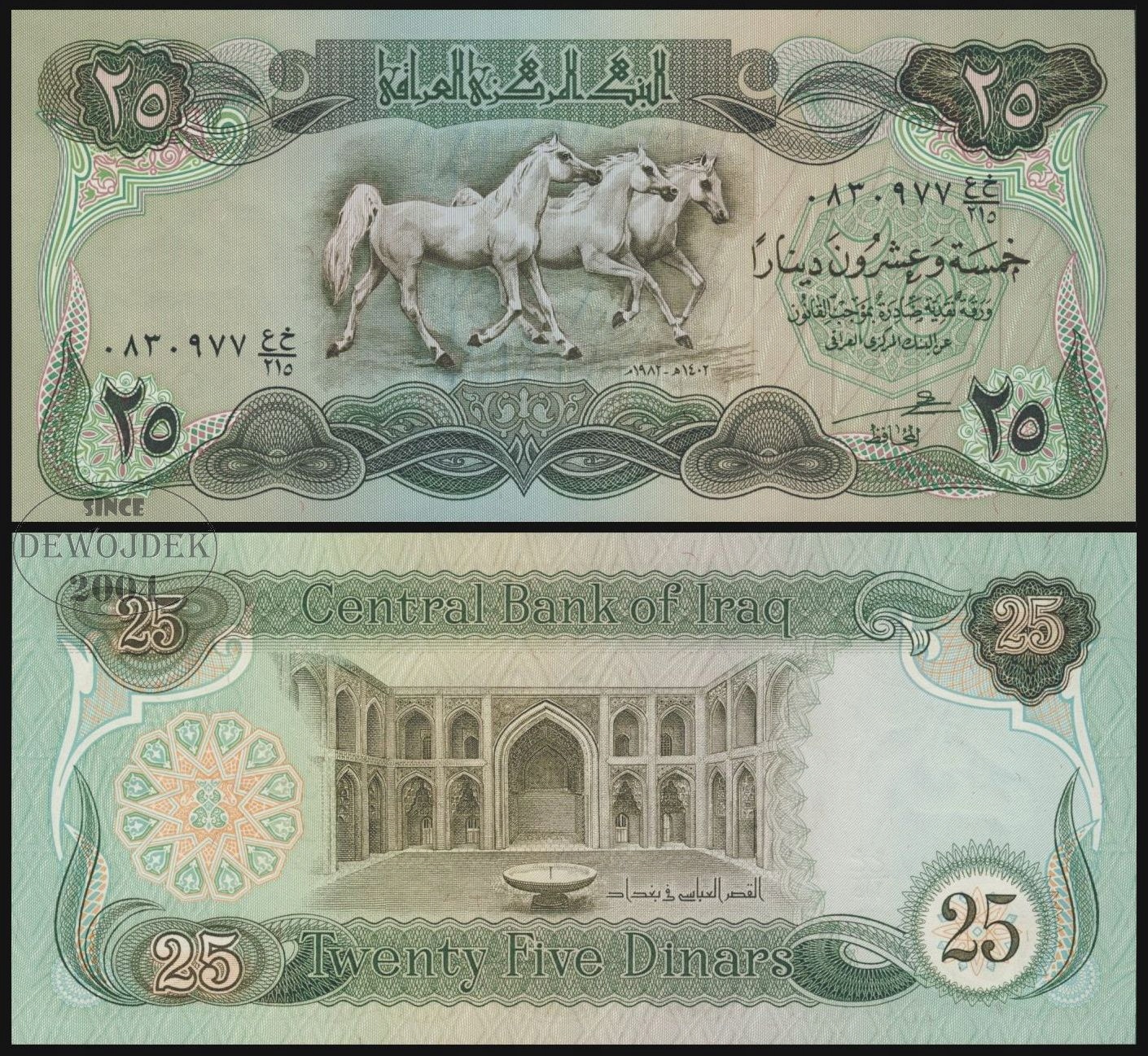 Макс-Ірак 25 динарів 1982 AH215 # P72 коні # UNC
