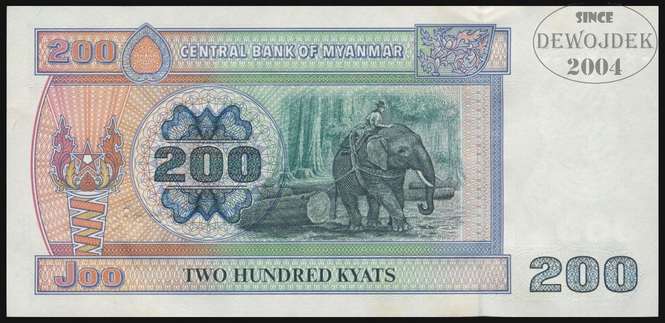 Макс-М'янма 200 Kyats 1998 EO # P75B великий # UNC