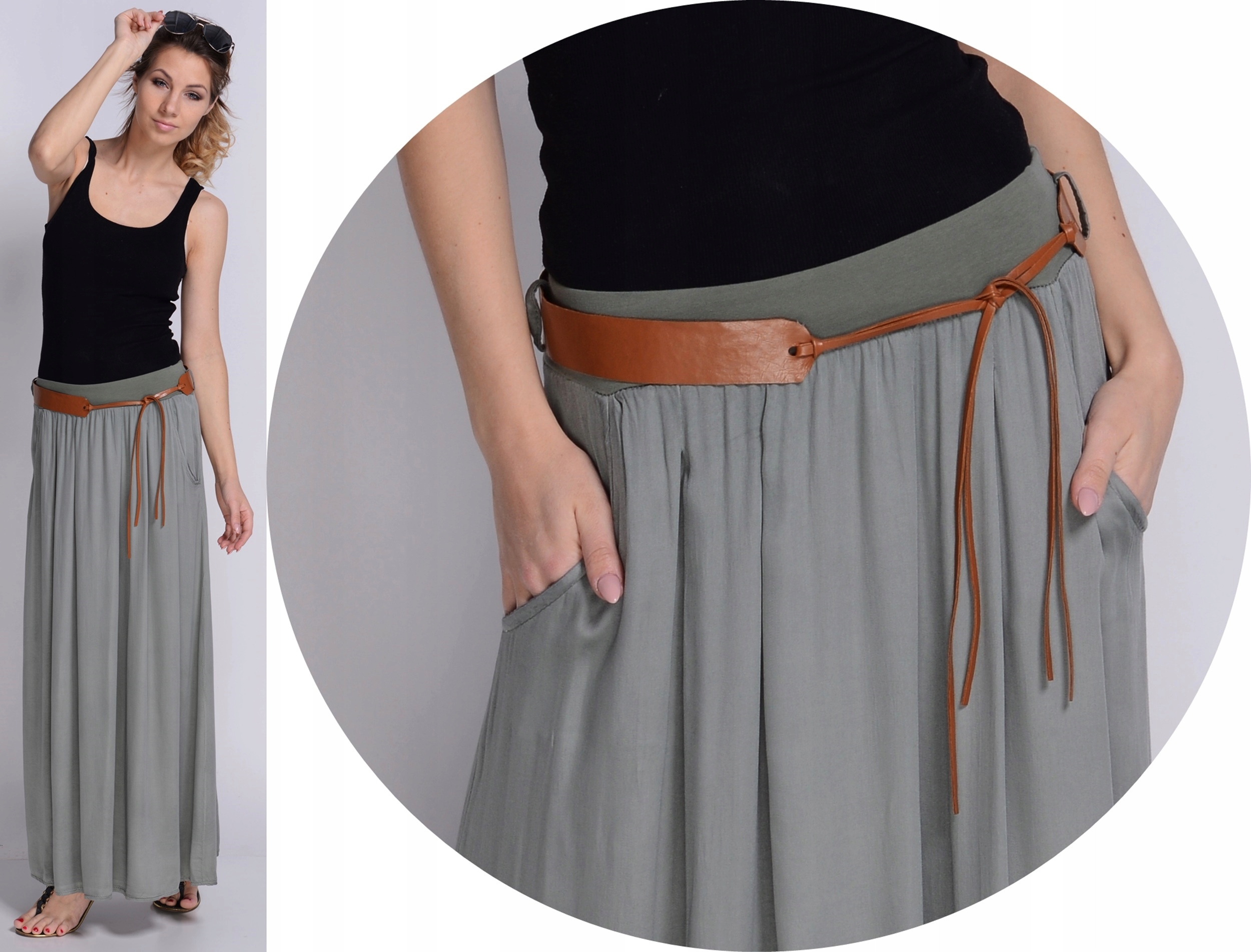 МАКСІ ДОВГА ПОВІТРЯНА СПІДНИЦЯ ОЛИВКОВА + РЕМІНЬ БЕЗКОШТОВНО