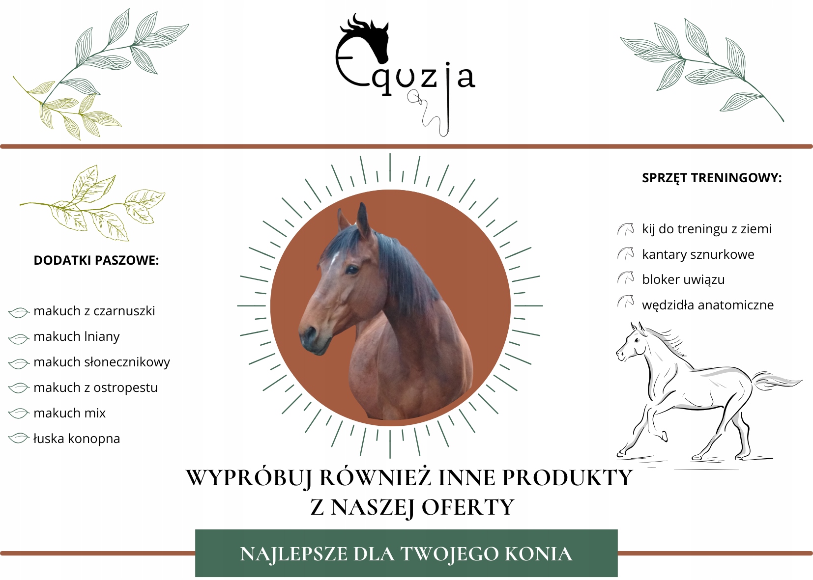 Макуч є чудовою кормовою добавкою для спортивних, племінних і рекреаційних коней, а також птиці та свиней. Виготовляється в Польщі шляхом холодного віджиму олії з високоякісного насіння льону. Отриманий природним шляхом без хімічних добавок.