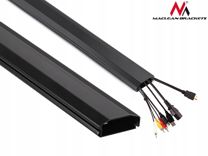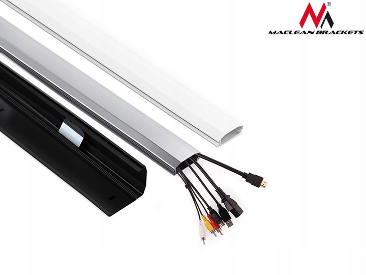 Високоякісна алюмінієва накладка. Це дозволяє елегантно та непомітно розташувати та приховати кабелі, що підключають RTV/SAT/AV обладнання. Низький профіль смуги робить її менш помітною.