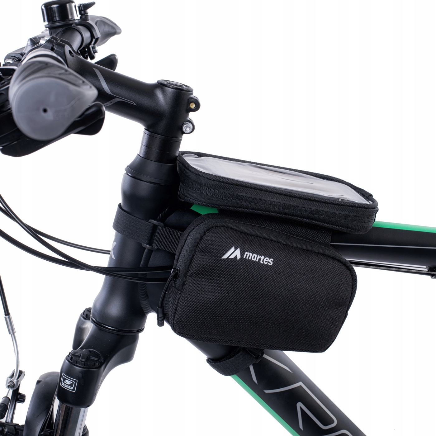 Велосипедна сумка для рамки Martes Navan - це зробить кожну поїздку на двох колесах приємнішою. 4 У двох бічних кишенях Ви можете вмістити, наприклад, запасну внутрішню трубку або патчі. У верхній частині є прозора кришка смартфона, тому ви можете легко слідувати своєму маршруту. Встановлений на липучці, щоб ви могли швидко зняти його з рами.