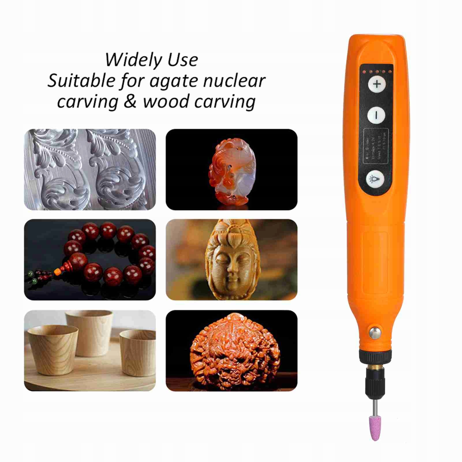 6. Він ідеально підходить для гравіювання та шліфування матеріалів, таких як дерево, камінь, персик, яйце, ремесла, кераміка тощо. Ручне різьблення, полірований нефрит, камінь, дерево, корпус комп’ютера, друковані плати, свердління матеріалів.