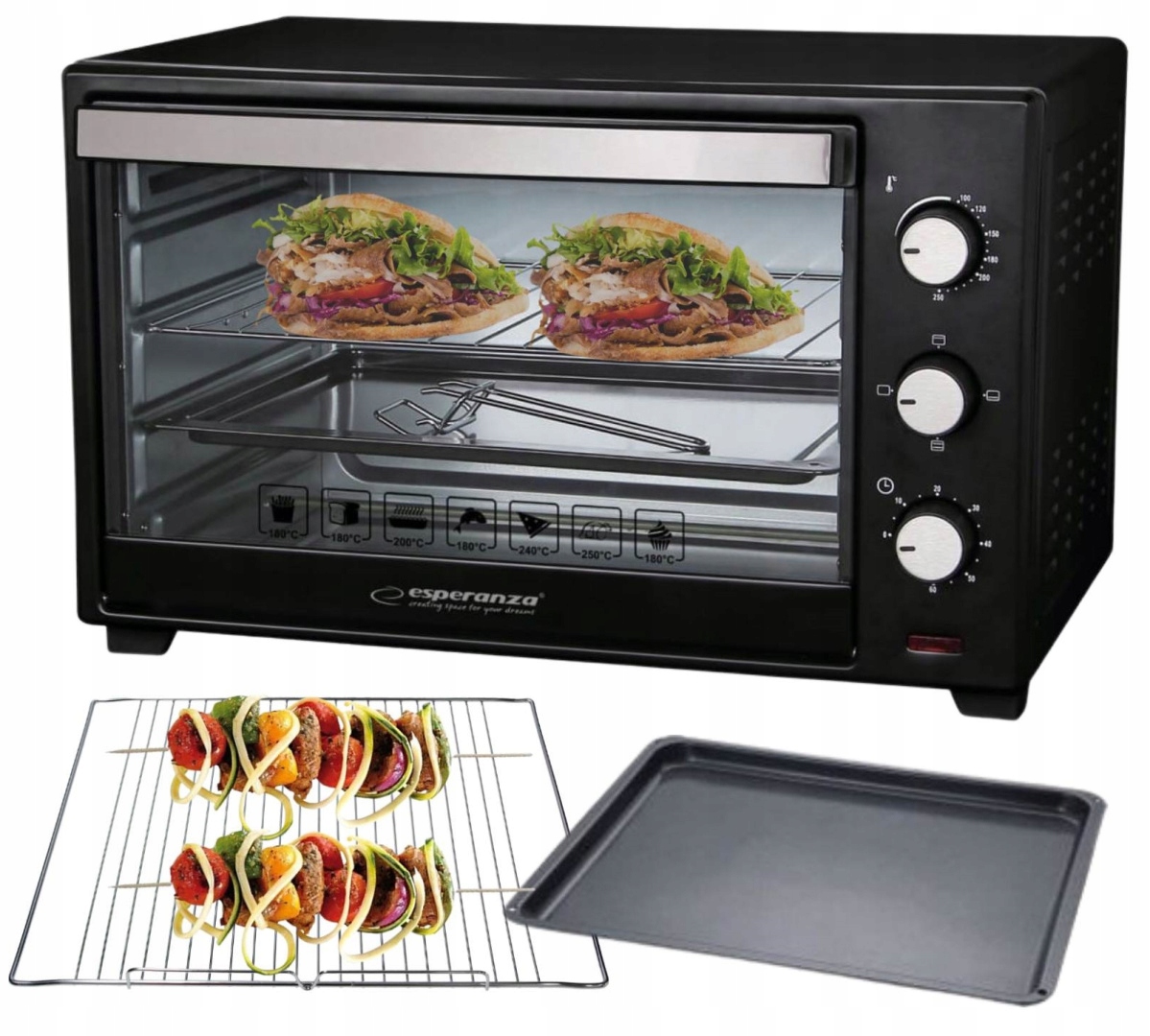 З mini З духовкою Esperanza PROSCIUTTO ви зможете приготувати свою улюблену страву швидко та легко, а завдяки вбудованому піддону для крихт нижня частина легко відкривається та очищається. Завдяки елегантному дизайну наша піч впишеться в будь-яку кухню. Насолоджуйтесь!
