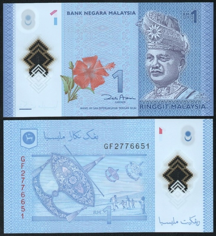 Малайзія 1 RINGGIT P-51a UNC серії GF полімер