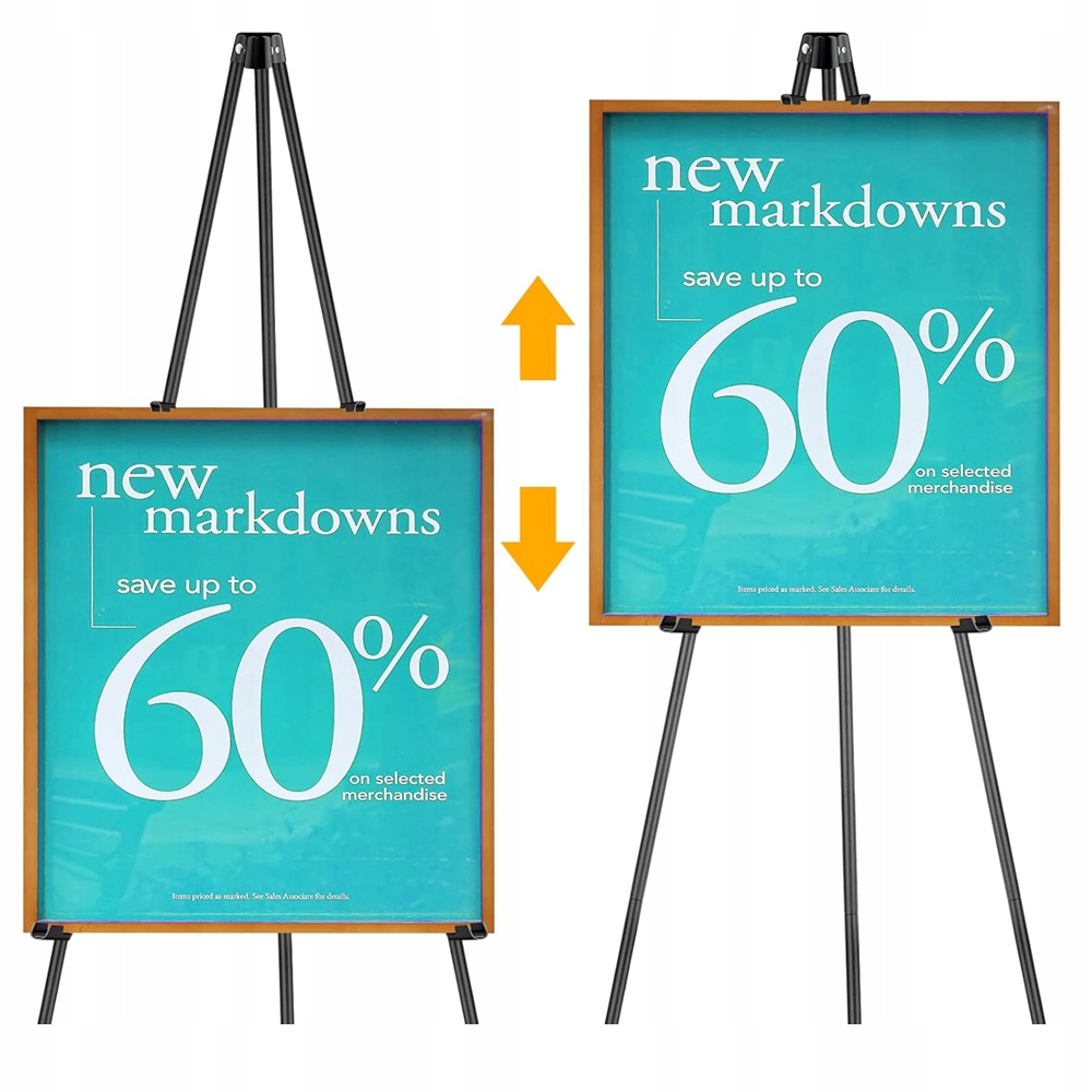 - Чорний мольберт складається з еластичної мотузки та складної труби, не потрібні додаткові інструменти чи аксесуари, його можна легко та швидко встановити або демонтувати за лічені секунди. Ідеально підходить для художніх виставок, весіль, торгових центрів, ресторанів та інших місць.