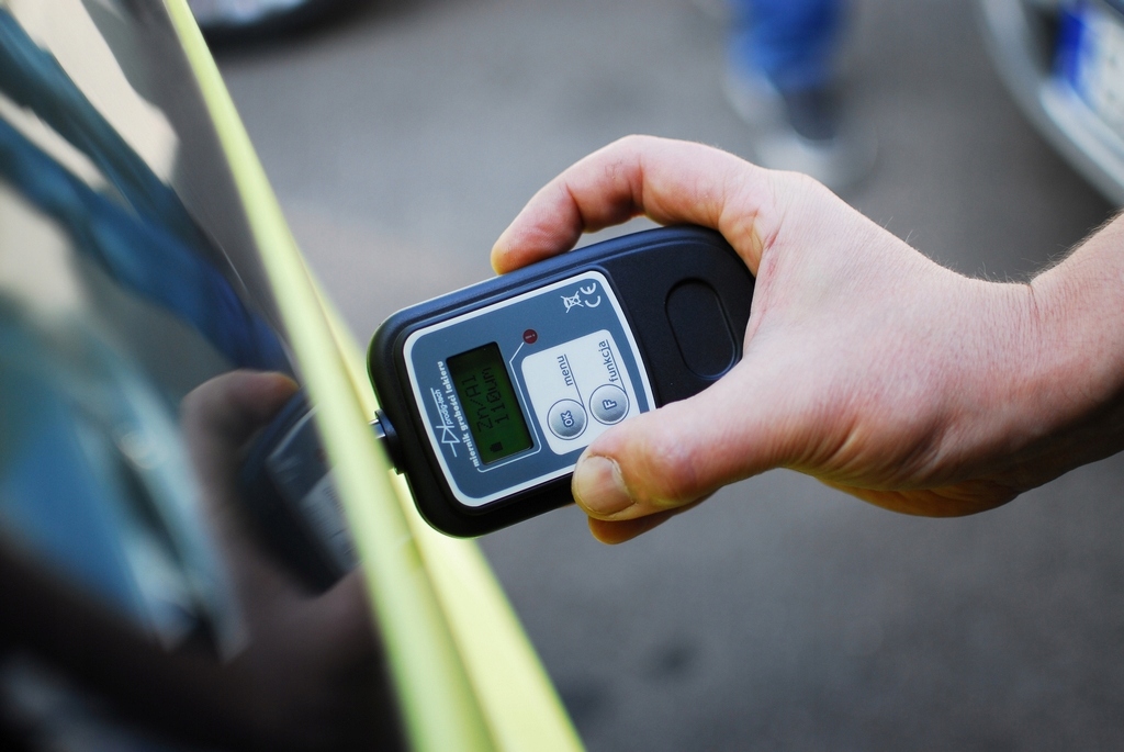 Метрик для вимірювання товщини фарби на металевих та алюмінієвих листах автомобіля. Він має функцію MEASUREMENT ASSISTANT® зі світлодіодним діодом і корпус із сучасними обтічними формами.