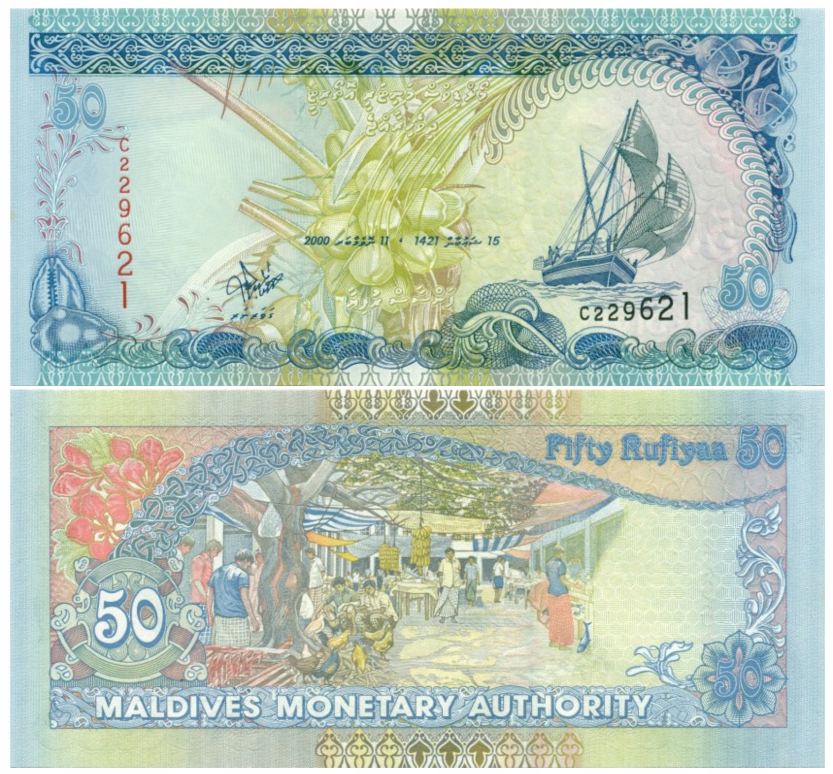 MALDIVES 50 RUFIYAA 2000 P-21 UNC, серійний номер банкноти може відрізнятися від зображеного на фото