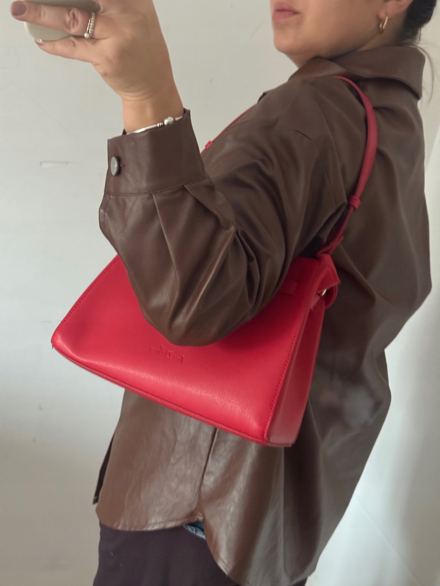 Маленька червона сумка Ines Delaure з красивим довгим ремінцем