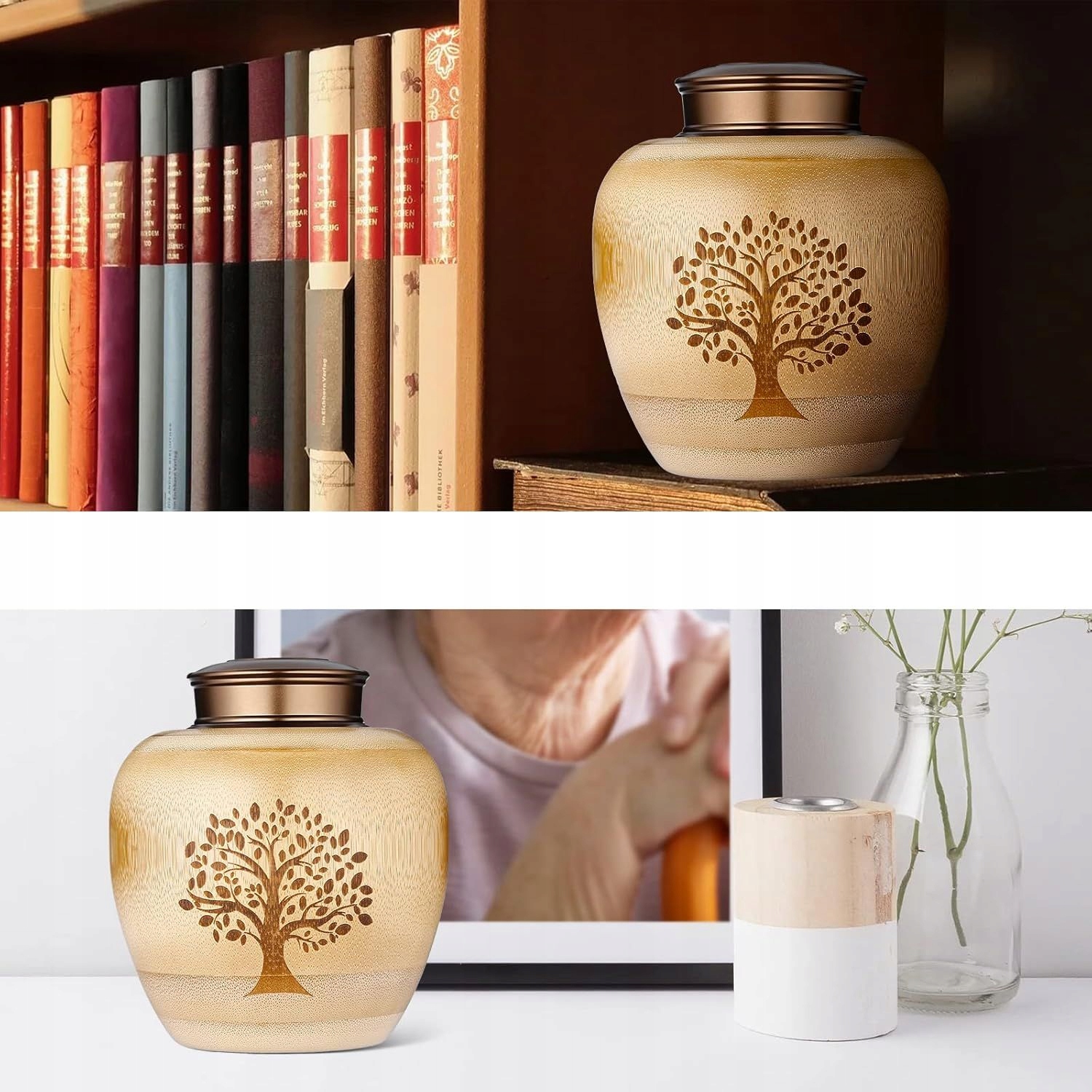 - 【Елегантний дизайн】: ця маленька урна з прахом із натурального бамбука з полірованою обробкою стане прекрасним витвором мистецтва у вашому домі, унікальної форми з вигравіруваним деревом життя на поверхні. Ця декоративна урна стане елегантним виходом на пенсію та елегантним виходом на пенсію, а також стане належною даниною пам’яті вашим близьким.