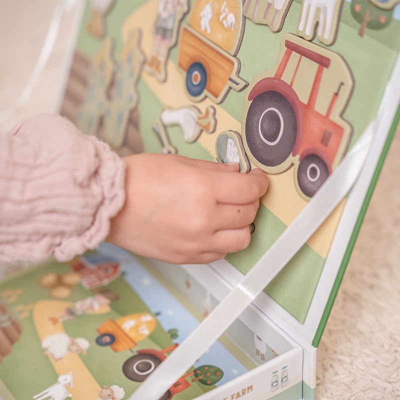 Коробка з набором маленьких фермерських магніти, яку ми можемо прикріпити на кришці, створюючи цікаві історії з сільським мотивом. Найбільш характерні персонажі маленького голландського бренду - Rosa & Jim, які ми можемо поставити на ферму з магнітами, поставити їх у різні роботи та ситуації, створювати елементи їх оточення.