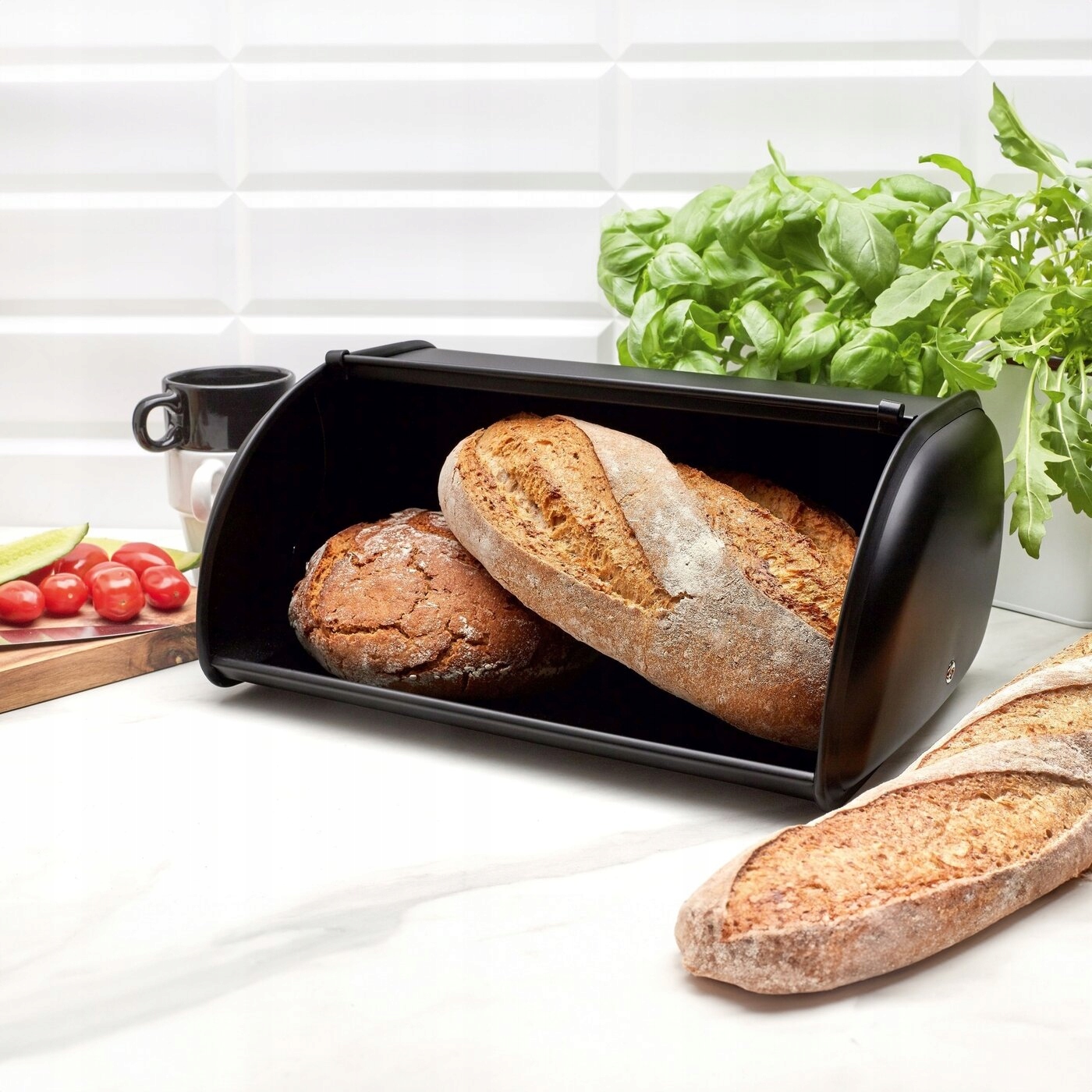 Маленький чорний рюкзак Tadar Satino Black, 35,5 x 23 x 14,5 см, виготовлений із нержавіючої сталі. Модель має відкидну застібку і правильну форму. Добре захищає вміст від забруднень і світла. Він також забезпечує вільний доступ до хліба. Виріб має вишукане матове покриття, яке додає елегантності та виглядає сучасно. У ньому можна розмістити хліб і булочки для всієї родини. Це пропозиція для тих, хто цінує свіжість, хрусткість і аромат свіжого хліба і шукає міцну хлібницю. Його можна стійко розмістити на кухонній стійці. Конструкція з нержавіючої сталі полегшує догляд. Ви досягнете гігієнічних умов для зберігання хліба з невеликими витратами часу та зусиль. Це допоможе вам щодня готувати смачні бутерброди та смачні сніданки. Дві ємності для спецій мають місткість 140 мл. Вони виготовлені зі скла та металу з порошковим покриттям чорного та білого кольорів. Вони мають кришки, які захищають вміст від атмосферних впливів, вологи та забруднення. Цей елемент оснащений можливістю регулювання діаметра отворів. Це допоможе вам точно дозувати мелені спеції. Ви можете розташувати спеції стабільно на столі, полиці або в межах досяжності під час приготування їжі. Ви можете підтримувати їх у чистоті без будь-яких зусиль. Контейнери для спецій мають ергономічну форму, що полегшує приправлення їжі та покращує захоплення. Той факт, що вони прозорі, дозволяє вчасно поповнювати вміст (наприклад, сіль, перець, мелений перець, гранульований часник, трави).