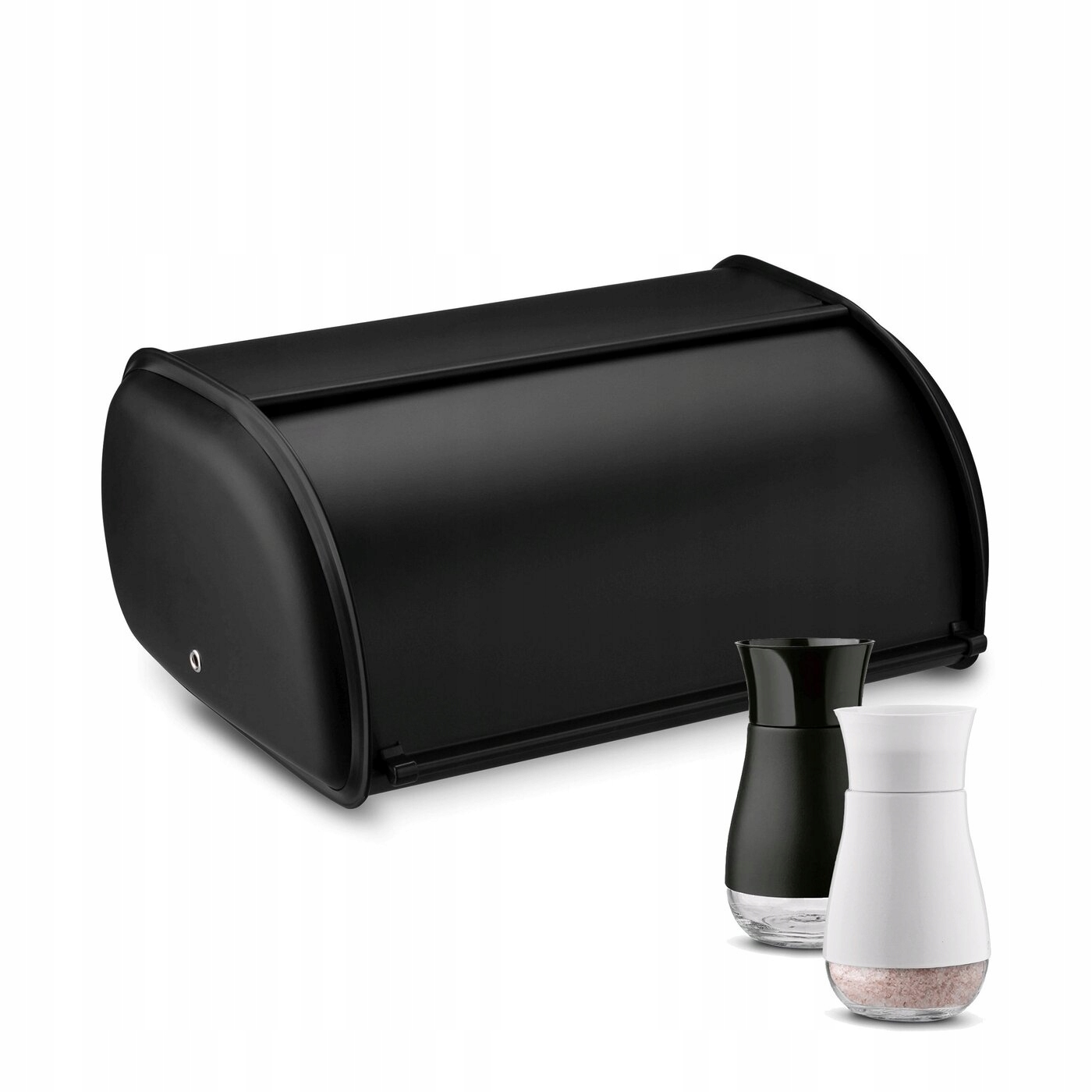 Маленька ХЛІБОПІЧКА, ЧОРНИЙ металевий контейнер, НАБІР СОЛЬНИЦЯ ТА ПЕКАРКА НА ПОРЯДКУ