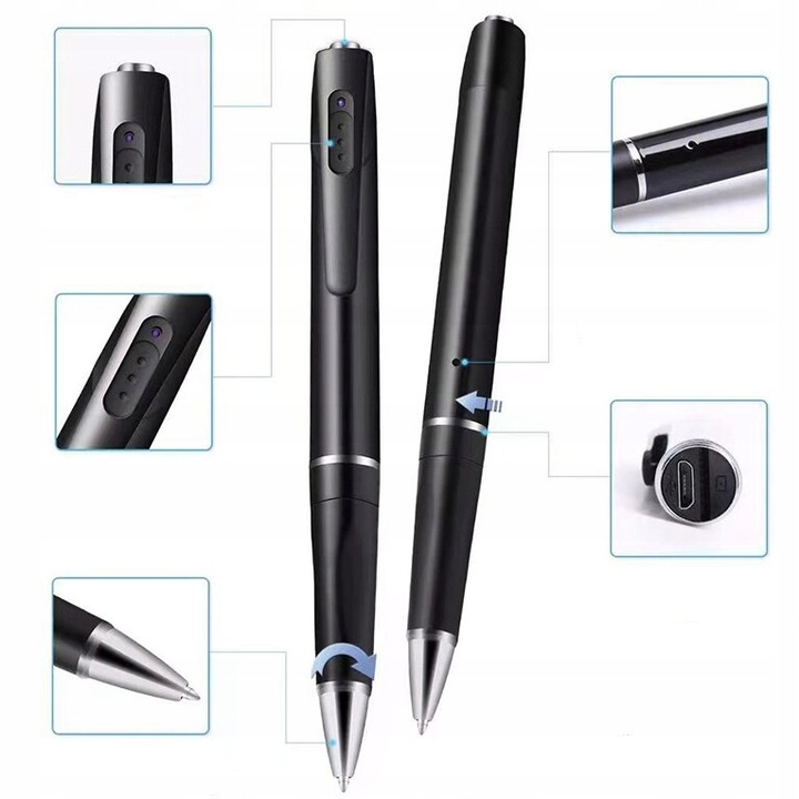 Міні-камера останнього покоління дбайливо захована в корпусі пера. Зображення записується у високій роздільній здатності 1920×1080 пікселів із частотою 30 кадрів на секунду. Завдяки цьому ви можете бути впевнені, що відео та зображення, зроблені за допомогою пристрою, зафіксують усе найважливіше. Все це укладено в красивий чорно-сріблястий корпус у вигляді елегантної ручки.