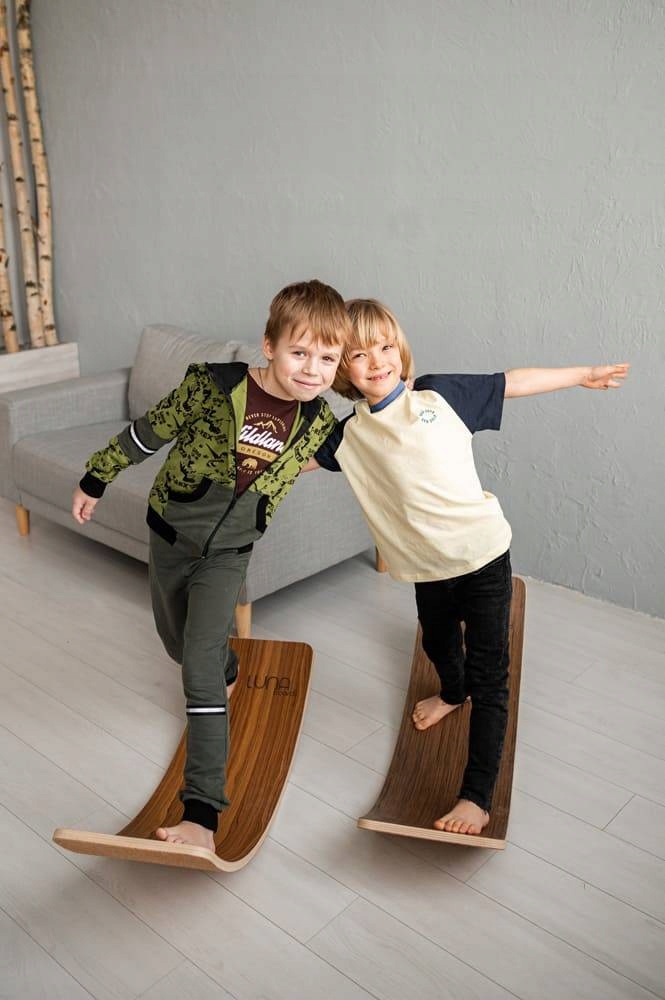 Дитяча дошка для балансу - аксесуар для тренування рівноваги. Він зміцнює стабілізуючі м’язи та допомагає розвинути відчуття рівноваги. Це також цікава дерев'яна іграшка. Існує багато можливостей його використання. Балансборд для дітей можна використовувати як: