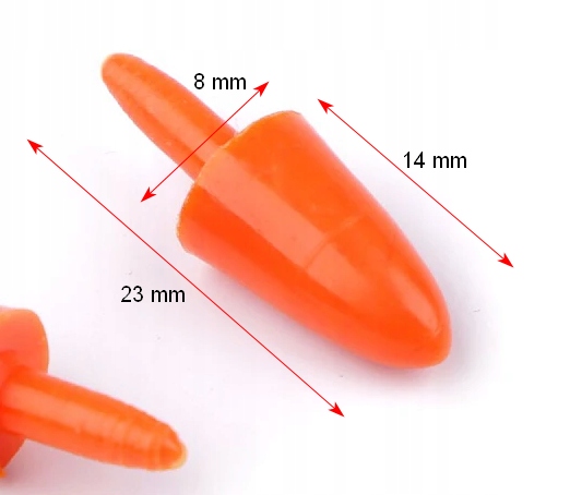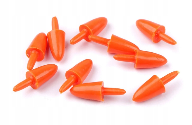 Маленькі носи моркви, які ви можете використовувати на головах сніговиків, дияволів, опудало, пінгвінів, птахів та інших персонажів. Вони також можуть бути розташовані як морква в різних весняних прикрасах та композиціях. Знизу у них є підказка, яку можна вставити, наприклад в полістирольну кулю, дошки тощо