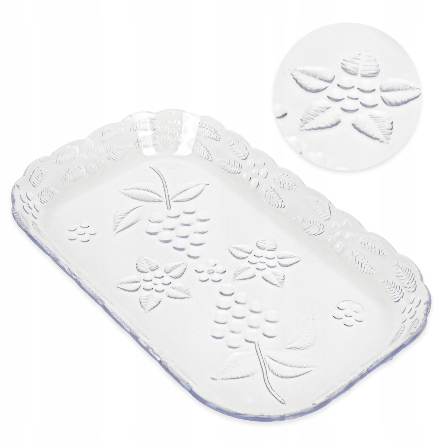 Піднос виготовлено з високоякісного матеріалу, стійкого до пошкоджень. Піднос прямокутної форми з мотивом винограду.
