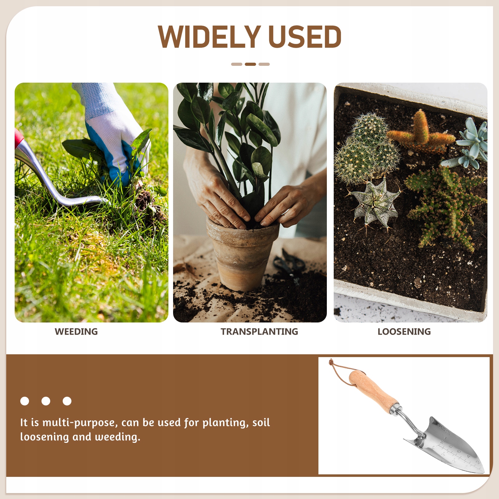 ✅Цей продукт являє собою маленьку лопату для висаджування квітів у саду, виготовлену з нержавіючої сталі та дерев’яною ручкою, портативну та міцну. Ергономічна ручка зменшує втому рук і ідеально підходить для підтримки вашої руки. рішення для садівників, які мають труднощі з переміщенням ґрунту.