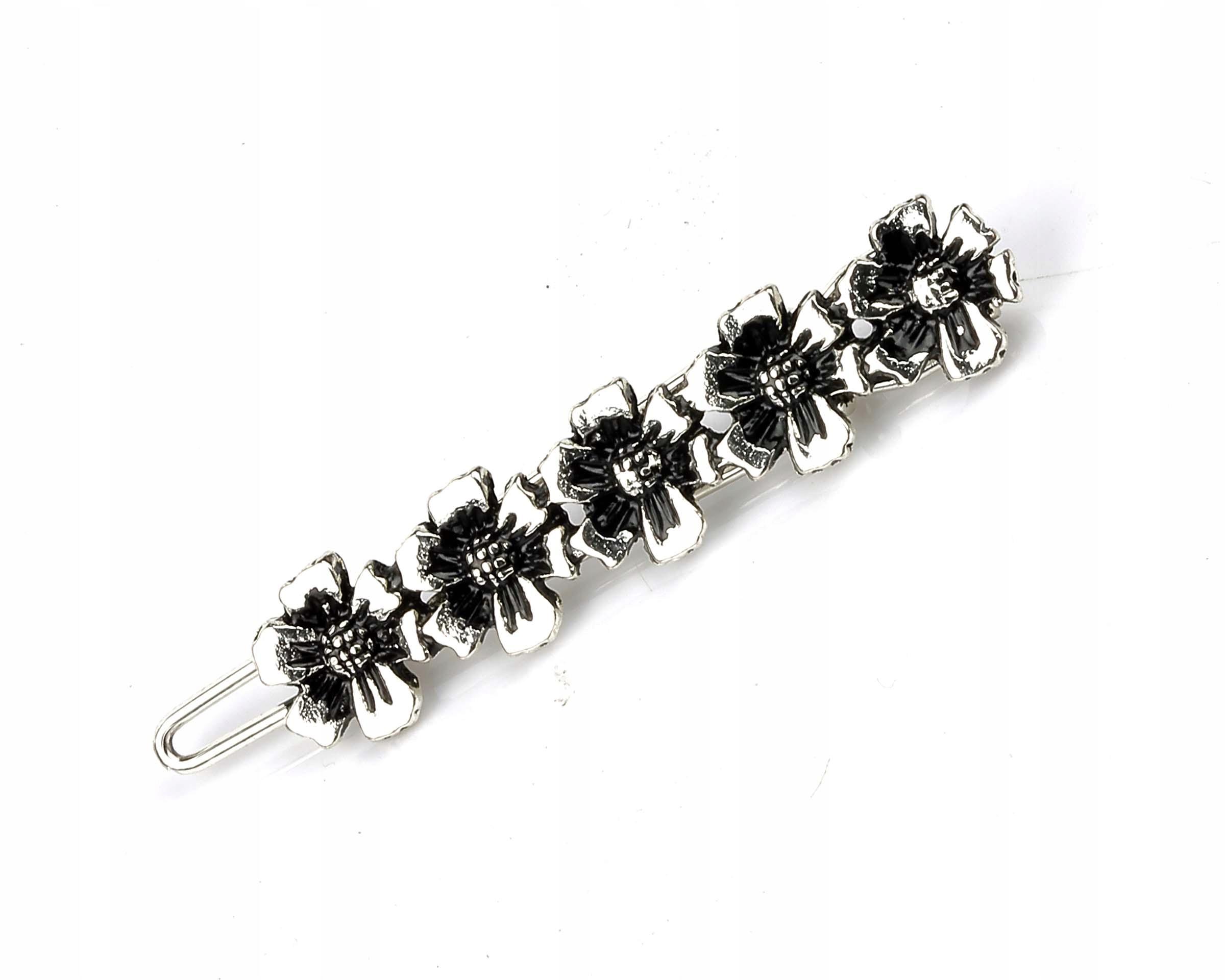 Декоративний волосяний виріб, покритий сріблом родіювання, прикрашений п'ятьма квітами.