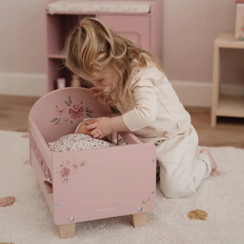 Дерев’яне лялькове ліжечко з постільною білизною, маленька голландська