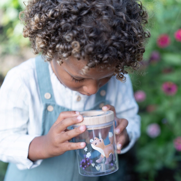 Банки з лісовими друзями з маленької голландської мови. Практична банка дозволить вам познайомитися з світом комах ближче. Дерев’яна кришка, оснащена збільшенням скла, що дозволяє бачити найменші деталі. Баночка прикрашена чарівними темами колекції лісових друзів. Прозорий пластик дозволяє бачити комах з усіх боків, кришку можна легко видалити, а отвори вентиляції забезпечують доступ до повітря. Набір включає карту комах, де ви можете позначити всіх вивчених комах. Баночка ідеально підходить для всіх невеликих дослідників природи та чудового доповнення до інших продуктів із колекції саду з маленької голландської мови.